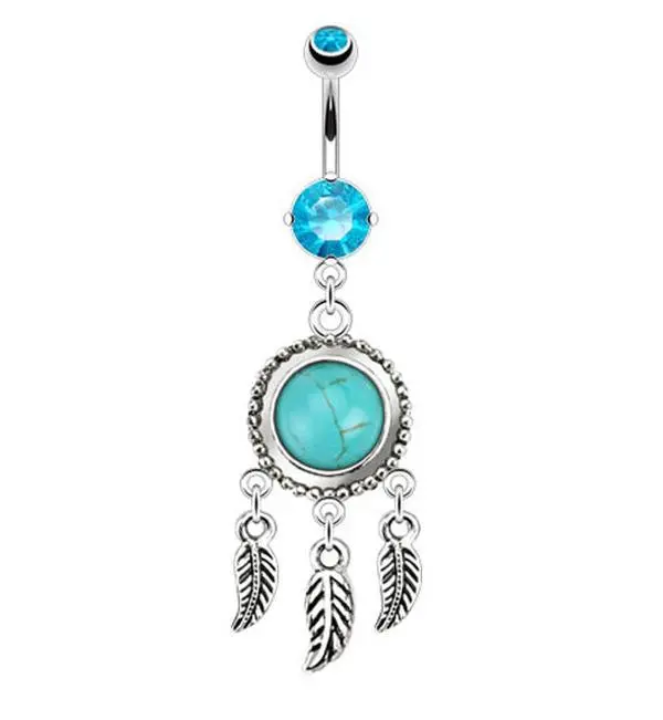 Turquoise Stone Dreamcatcher Dangle Belly Button Navel Ring