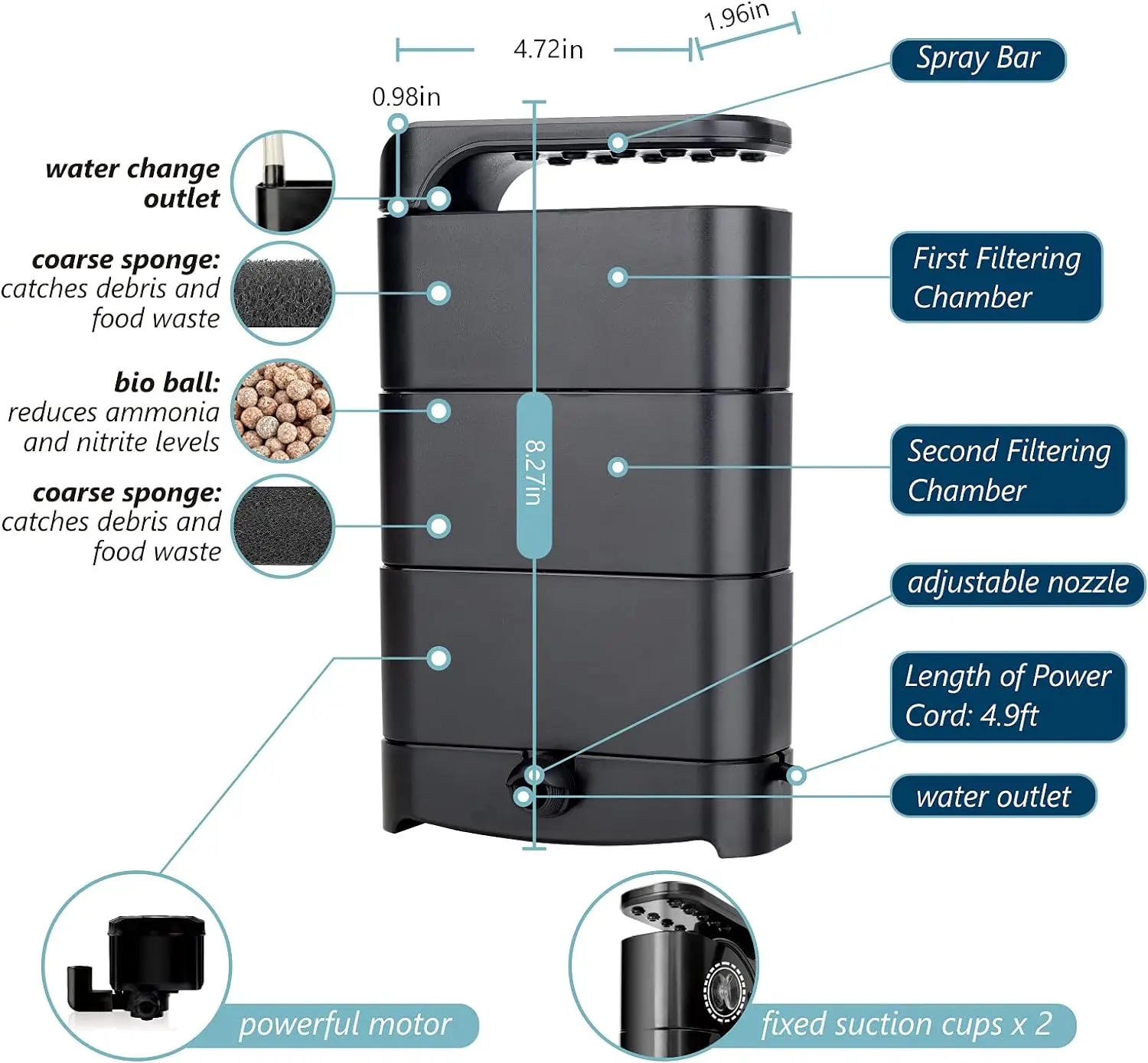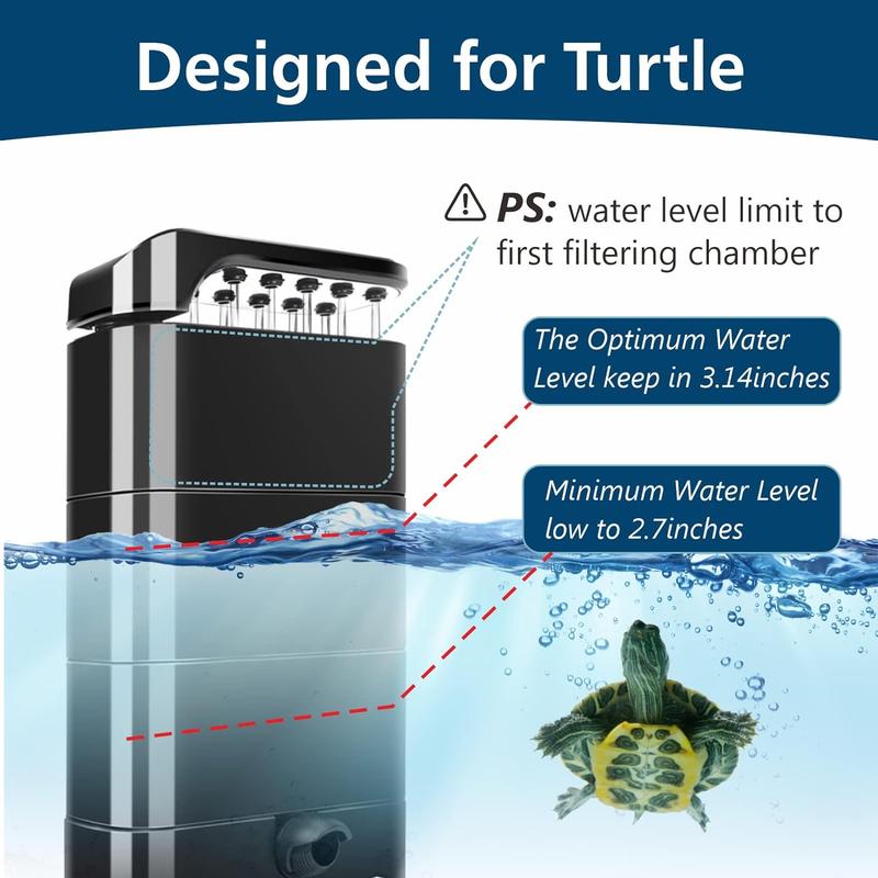 Don’t buy this. It doesn’t filter anything the water stays murky I have to do water changes daily. I don’t overfeed at all,1 time a day. Basking lamp stays on for a certain amount of time. I had high hopes but this is a terrible filter.