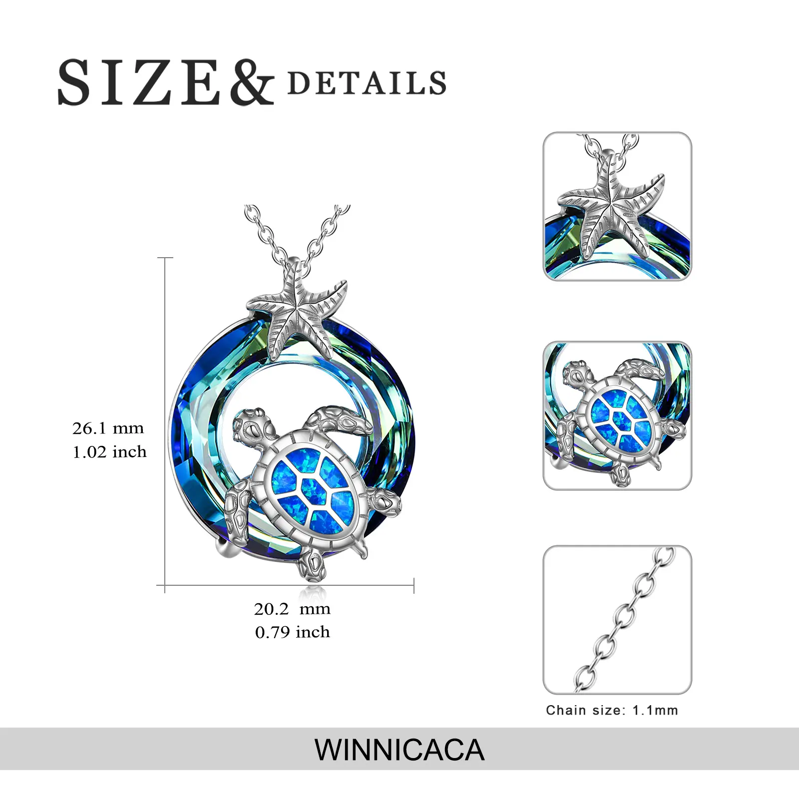 The turtle necklace features a chain length of 18" + 2" extension (45+5cm). The pendant measures 1.02*0.79 inches. This size ensures a comfortable fit for women. It's an ideal gift for women, making it a thoughtful present for any occasion.
