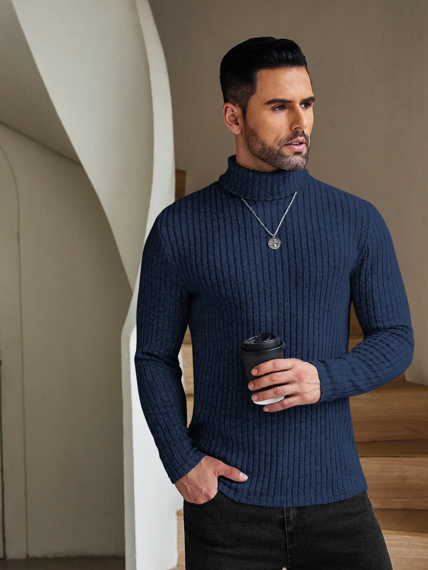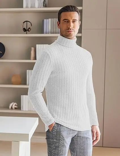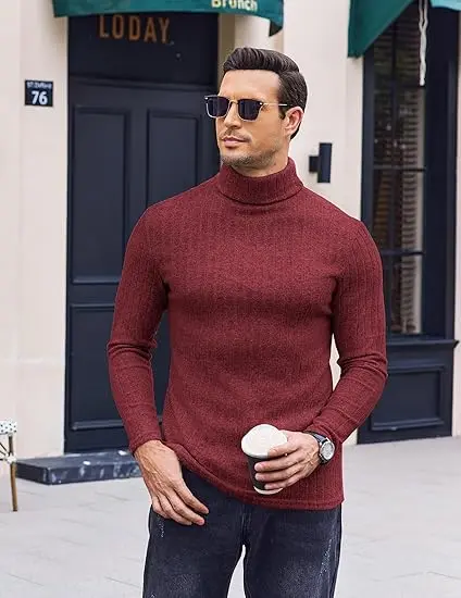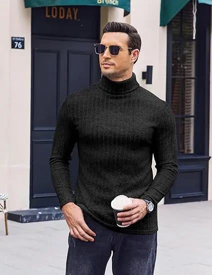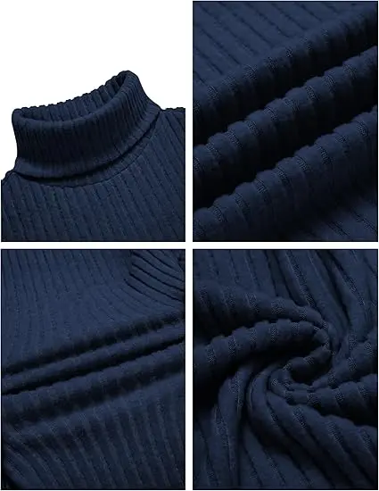 ·【DESIGN】 Turtleneck design, Solid color long sleeve ribbed shirt more attractive, easily matches a variety of clothing such as jeans, jackets, suits, etc