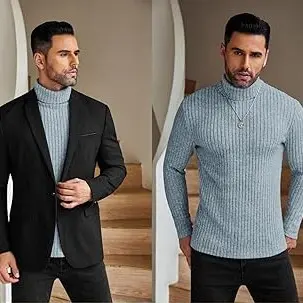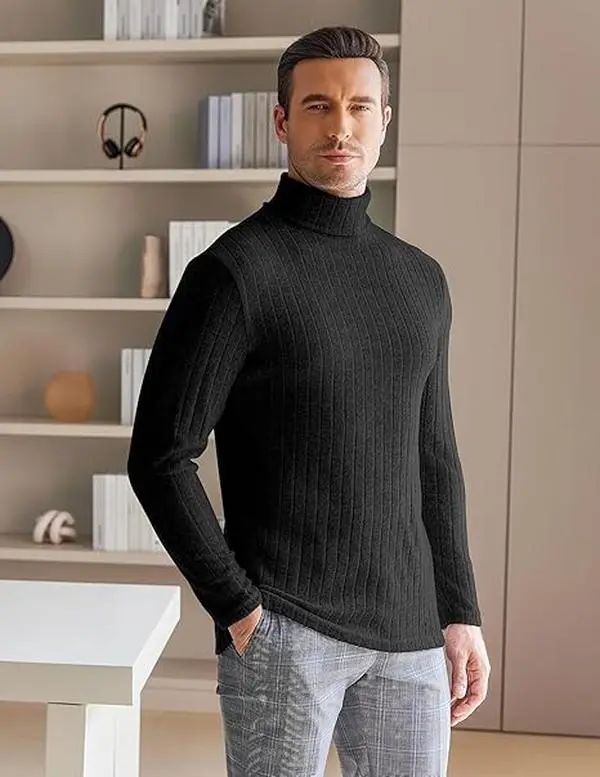 ·【DESIGN】 Turtleneck design, Solid color long sleeve ribbed shirt more attractive, easily matches a variety of clothing such as jeans, jackets, suits, etc