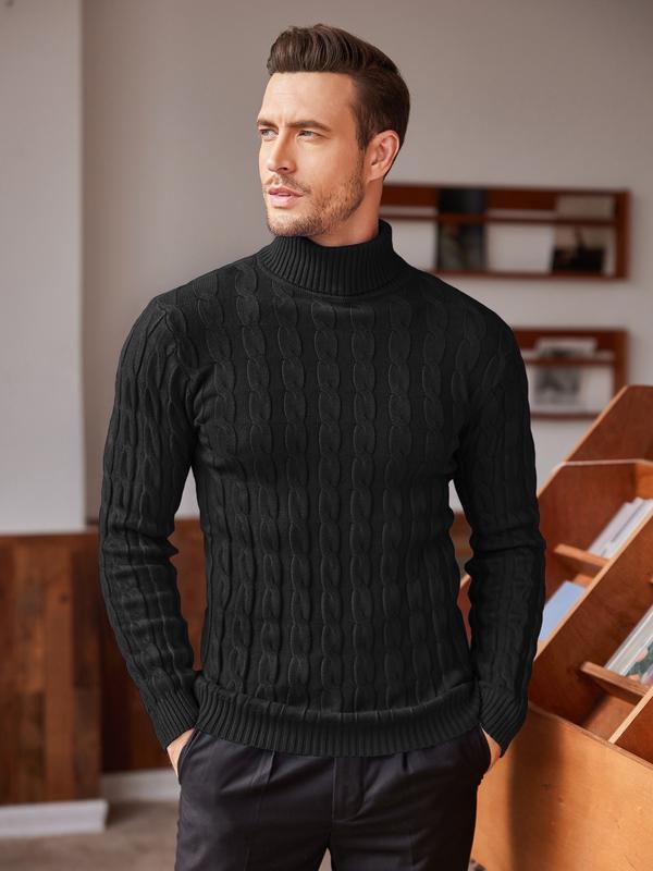·Premium long sleeve pullover sweaters design in slim fit, featuring with turtleneck, twist patterned, ribbed cuffs and hem.