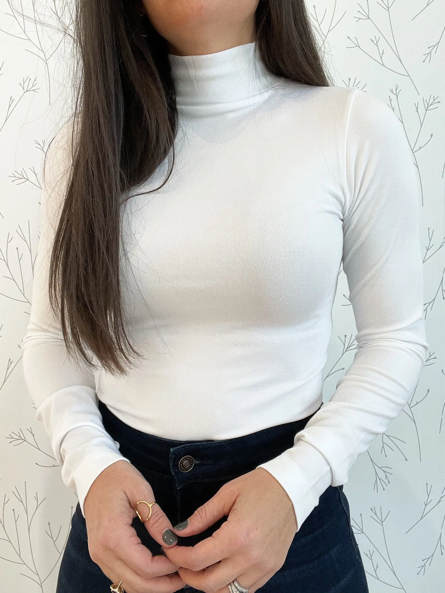 I love the gold zipper against the brown on this quarter zip. The material is high quality and soft. The fit is relaxed and a bit cropped. Cute with jeans or slacks. Definite staple for winter wardrobe.