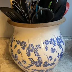 Obsessed with this vintage inspired Tuscan ceramic vase! Perfect for cooking utensils, flowers, and plants and adds the perfect grandmillennial cozy home decor to your house! @QVC, Inc #vintagedecor #kitchendecor #homedecor #vase #grandmillennialdecor
