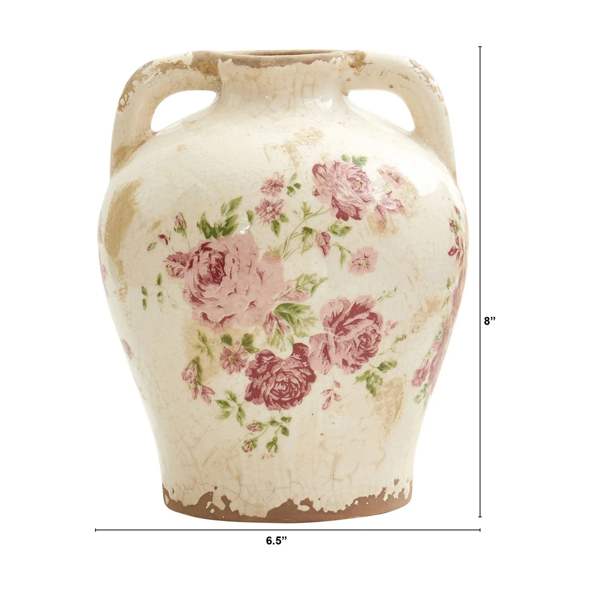 Nearly Natural 8" Tuscan Ceramic Floral Print Vase