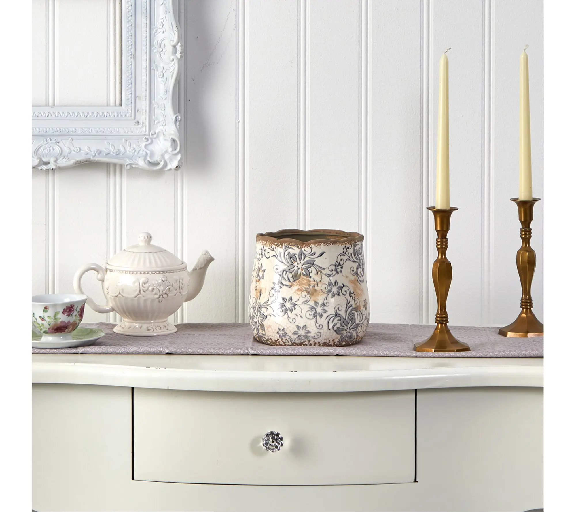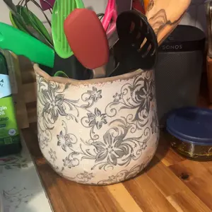 This is a stunning piece of pottery. It looks straight out of vintage French decor. It’s heavy and substantial. Just beautiful.