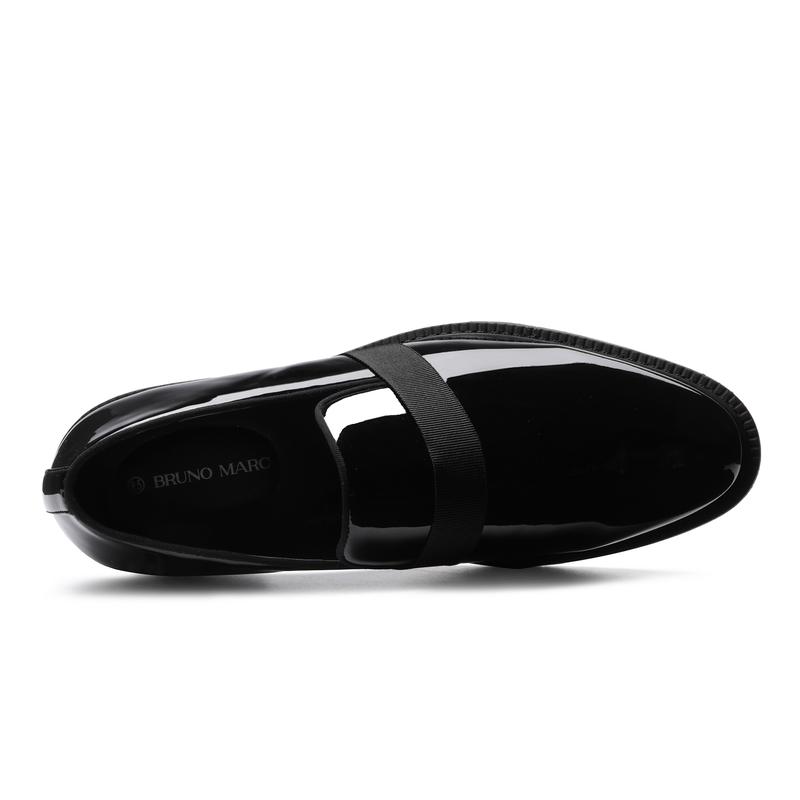 Whatever the event, own it in these Bruno Marc men's tuxedo dress shoes. Created with a TPR outsole, these Bruno Marc tuxedo shoes deliver superior durability and stability. A smooth patented leather delivers a classy look, while a soft PU-covered memory foam insole adds extra support in each step. Slip-on and off effortlessly with a lace-less design. Ideal for a wide range of social scenarios – from parties to work.