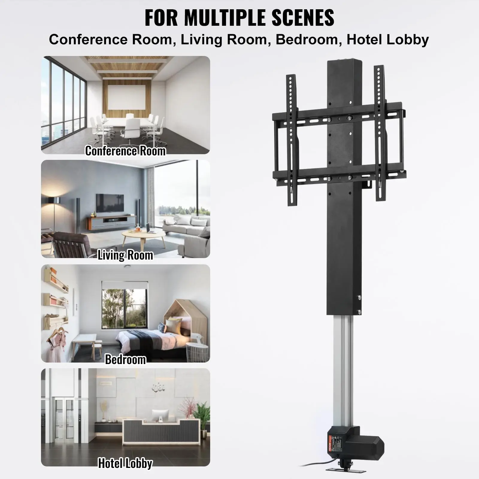 • Where Can It Be Used: You can install the motorized TV lift inside a cabinet, counter, or commercial or residential use, including office, meeting room, living room, bedroom, hotel lobbies, shopping mall, etc.