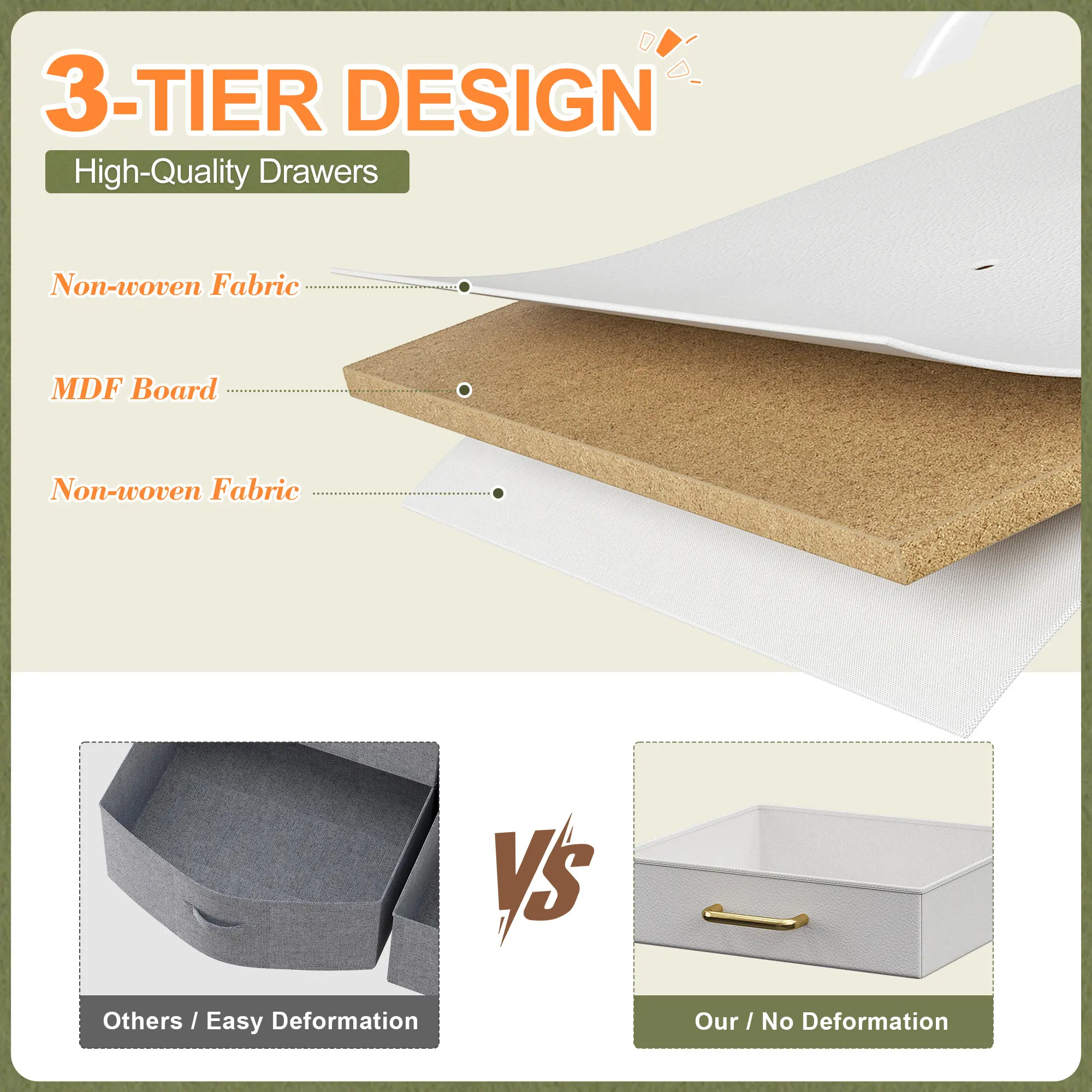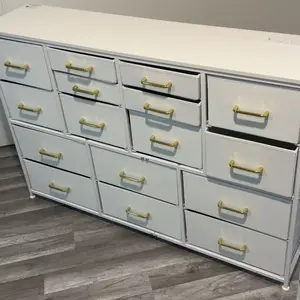 ·Sturdy, Safe and Stable-Crafted from high-quality fabric, a durable wooden top, a robust metal frame and easy-to-pull handles, this dresser TV stand brings longevity while being lightweight to move. Drawers glide smoothly for easy access even to little s. With anti-tip kits included, it's -friendly and ensures this clothes dresser stays securely in place. The 6 adjustable feet keep it stable on uneven surfaces and safeguard your floors from scratches