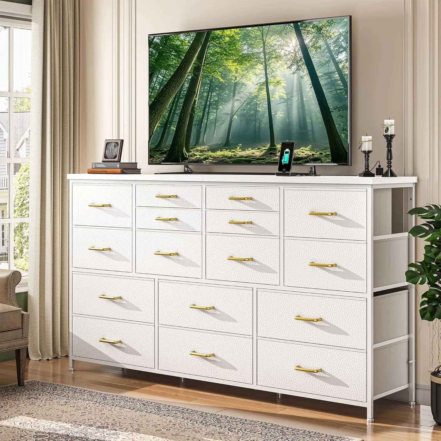 ·Super Multi-functional Usage-Change any space into an organized oasis with this dresser for bedroom with 16 drawers. Whether it's in the bedroom, living room, closet, hallway, or nursery, this long dresser serves as an excellent TV console or storage dresser, keeping clutter under control wherever you need it most.