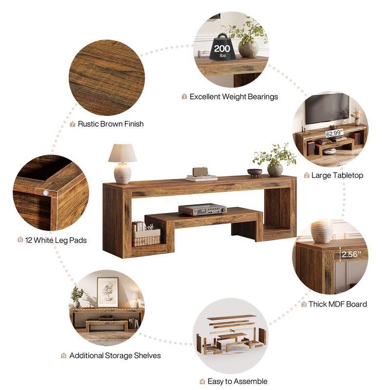 ·Rustic Farmhouse Design: This TV stand is designed to add farmhouse charm to your living space. The warm rustic brown finish complements farmhouse, traditional, or modern styles