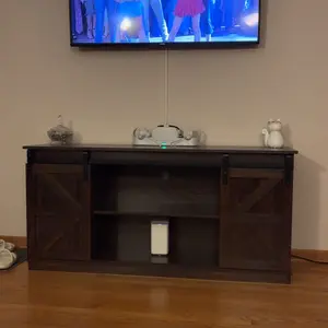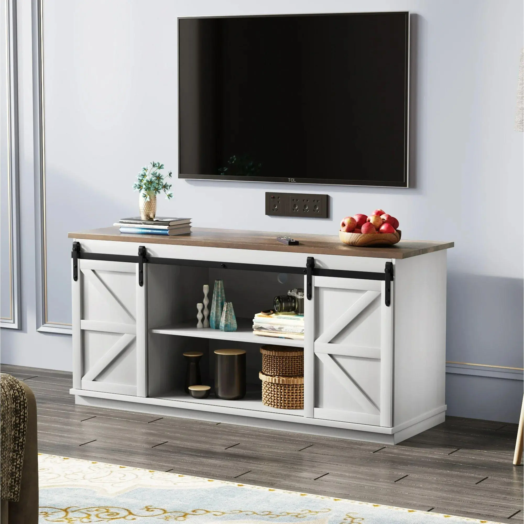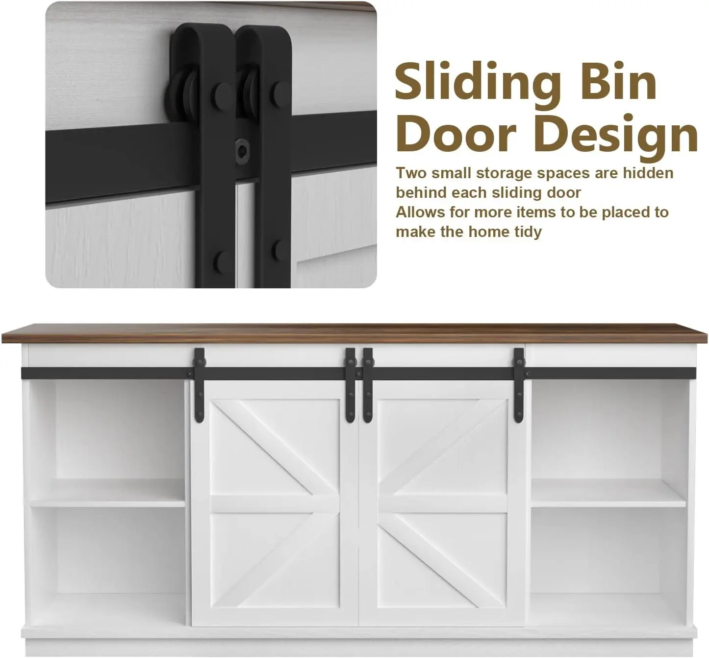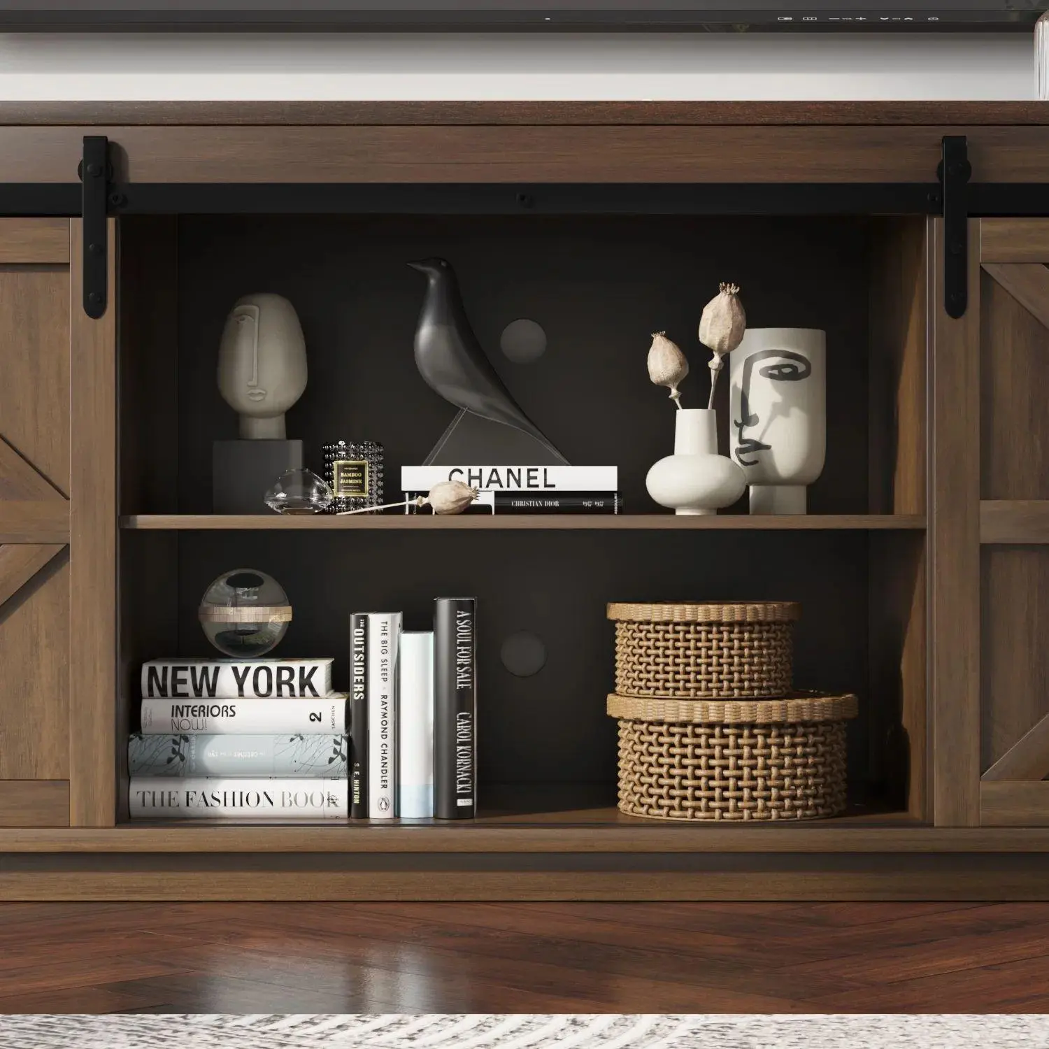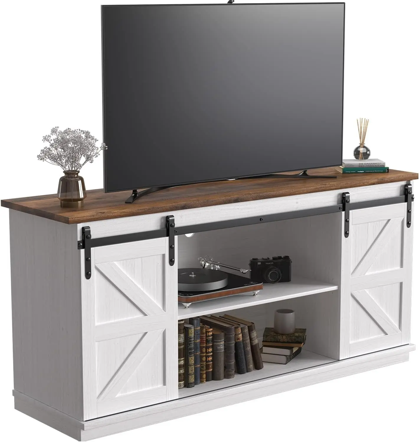 ·Sliding Barn Doors: Two movable barn doors on the TV stand for convenient access to cabinets. Quality steel bar make doors slide smoothly, and no noise during movement. Two sliding barn door design to conceal side storage cabinets or center storage shelves.