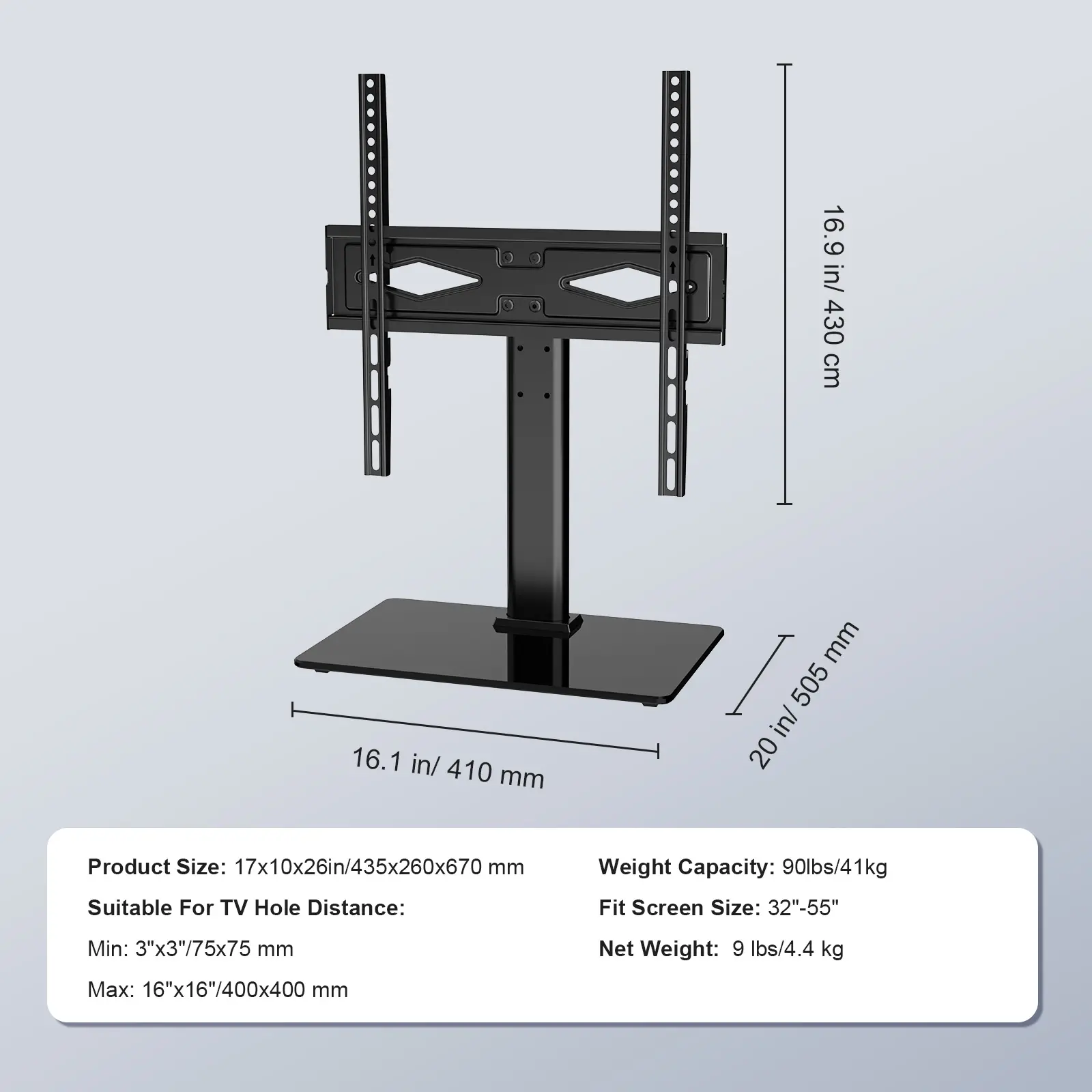 • Universal Compatibility: Designed to accommodate your needs, our TV stand mount fits 32-55 inch TVs with a weight capacity of up to 90 lbs. The VESA ranges from 75mm x 75mm to 400mm x 400mm, making it compatible with most brands of TVs.