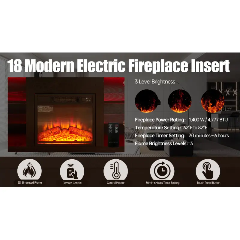 ·Realistic & Adjustable: The fireplace features 3 levels of brightness adjustment and flame combustion speed to simulate the natural flames in use.