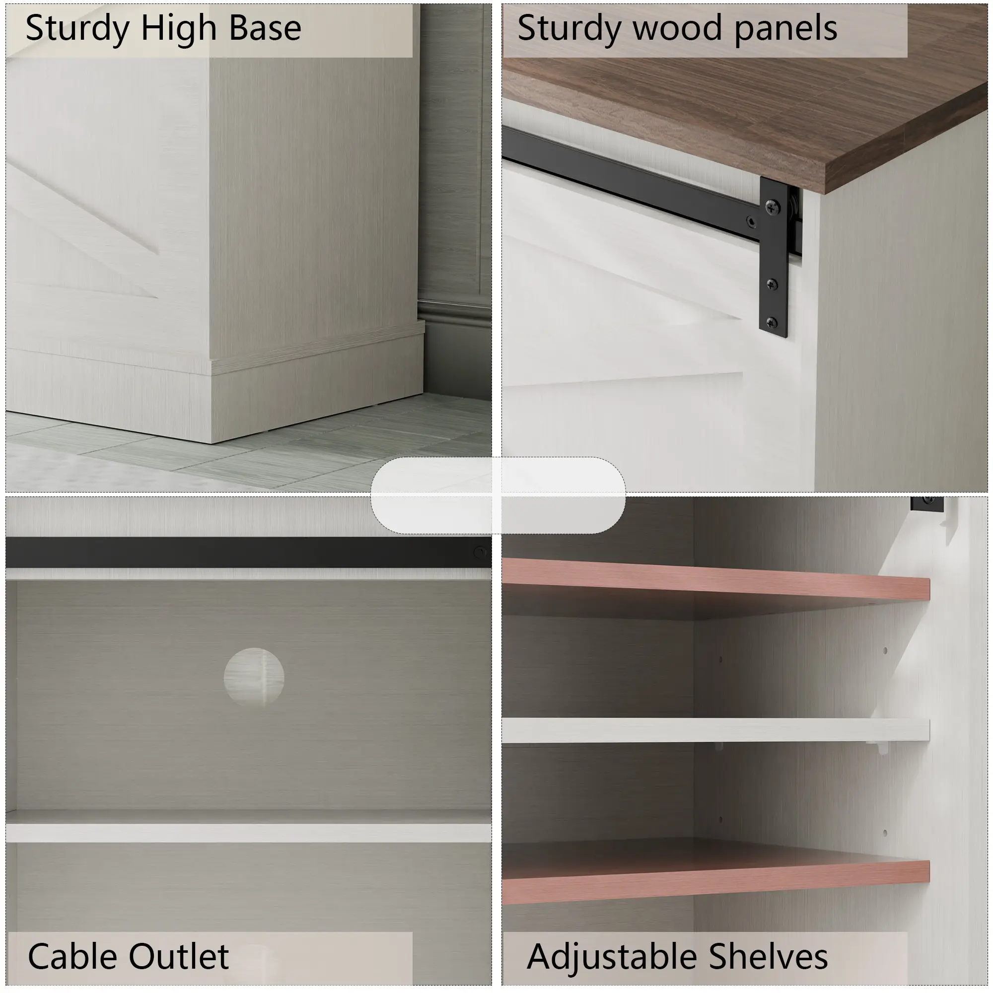 We love the look of this entertainment center. Made with quality materials and seems like it will last us a long time. I would have given 5 stars but instructions could have been a little clearer and the door handles that came with it seemed to be the only cheap part. We added our own fire place to it and it fit perfectly!