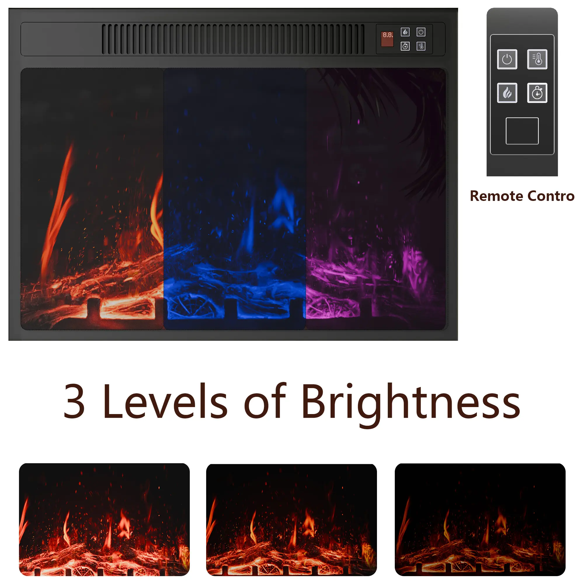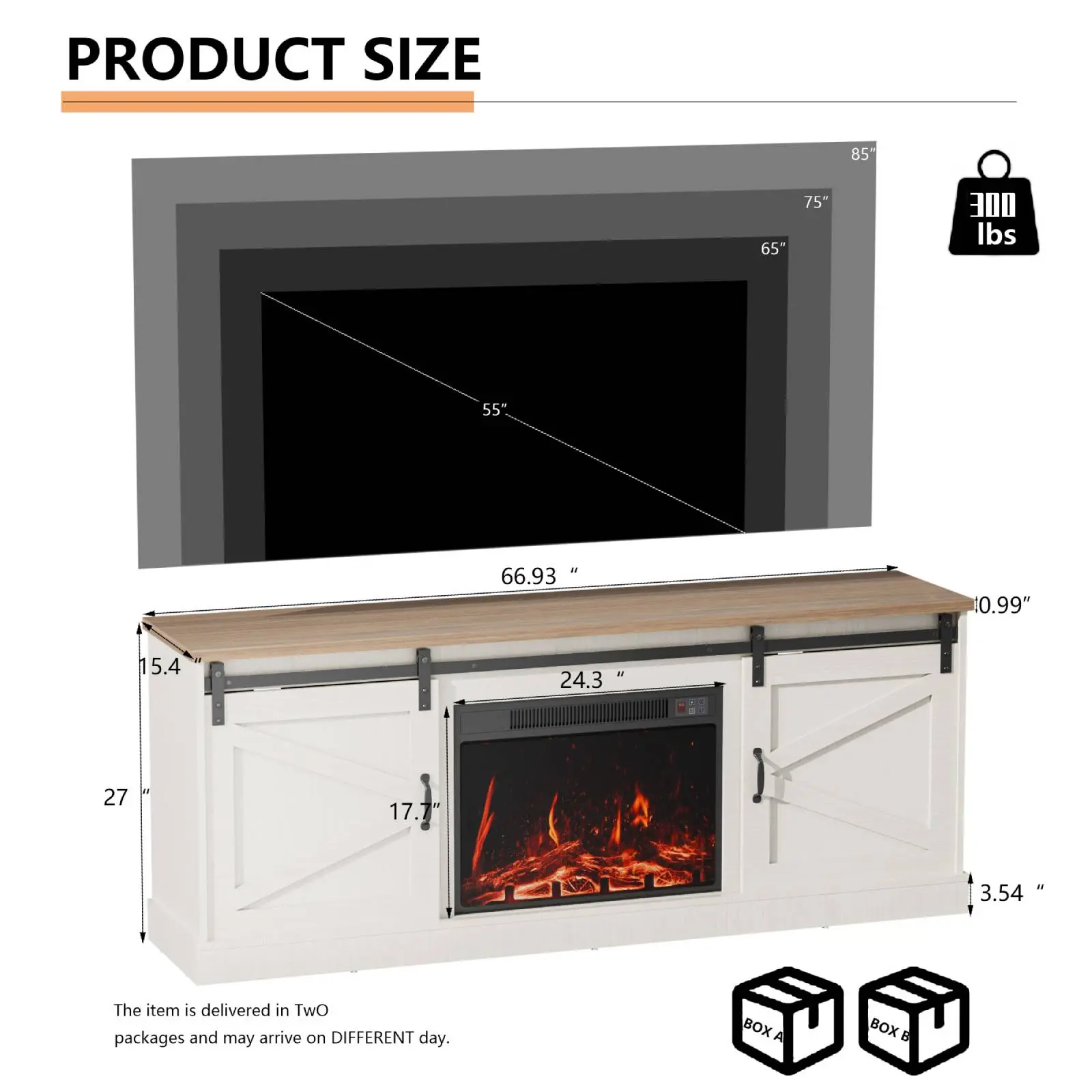 Easy assembly. Looks great. Received within one week. Led fire is cool. The fire is best for a small room. More like a space heater than a fireplace. 70” tv in photos.