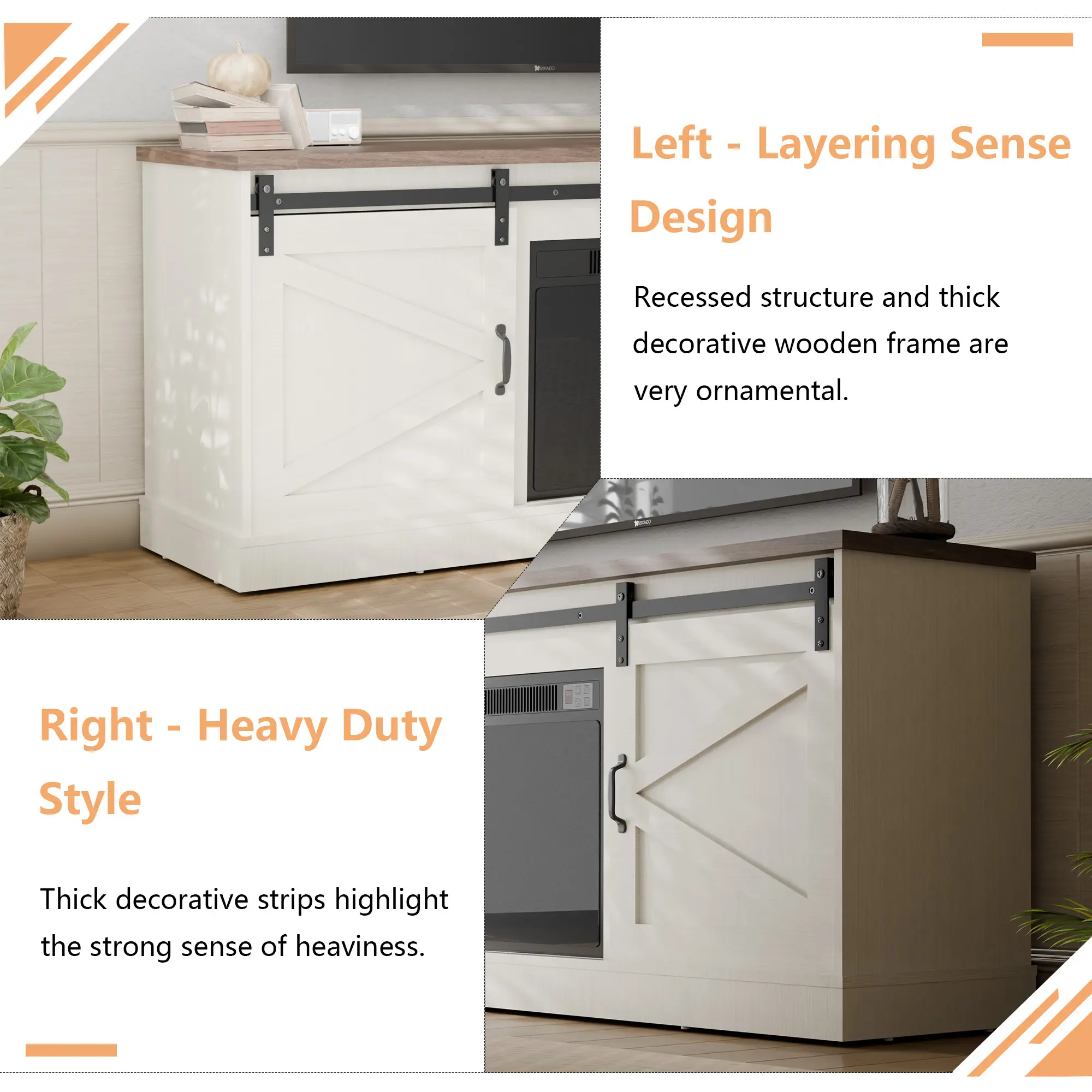 I love this sooo much. I waited for the fireplace to come back in stock and ordered one fireplace and one standard tv cabinet. They are super heavy and sturdy. Was super easy to put together.