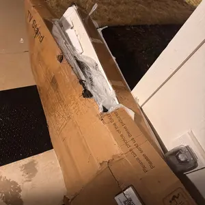 Just got delivered today and it is damaged and a piece is broken when we open the box. Whoever delivered it they didn’t take care of it. The box had damaged.