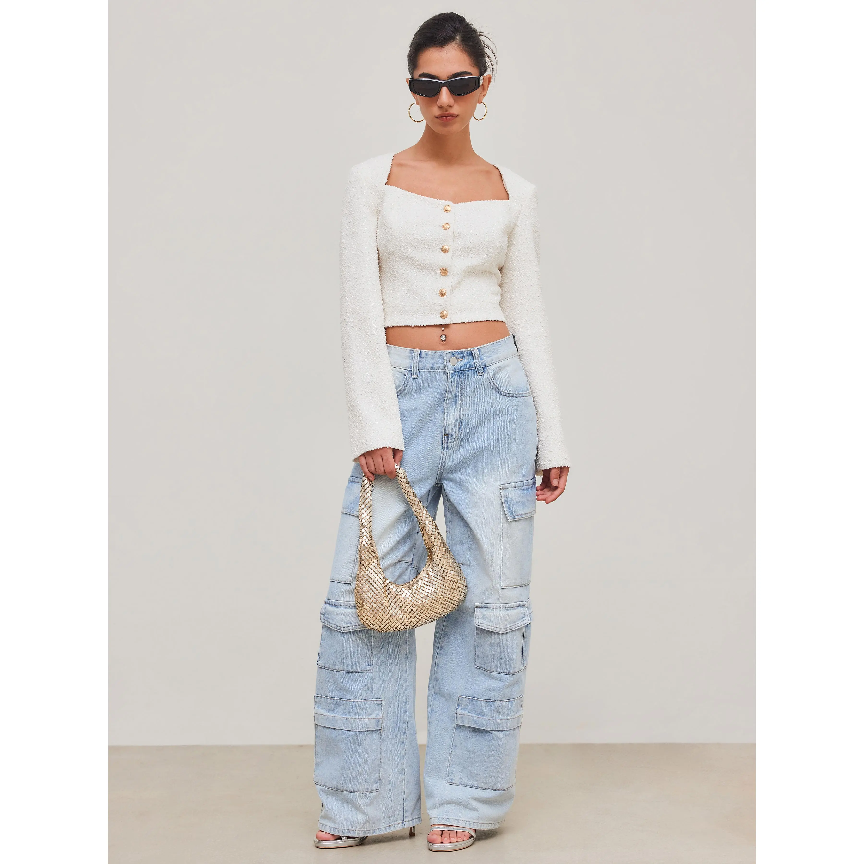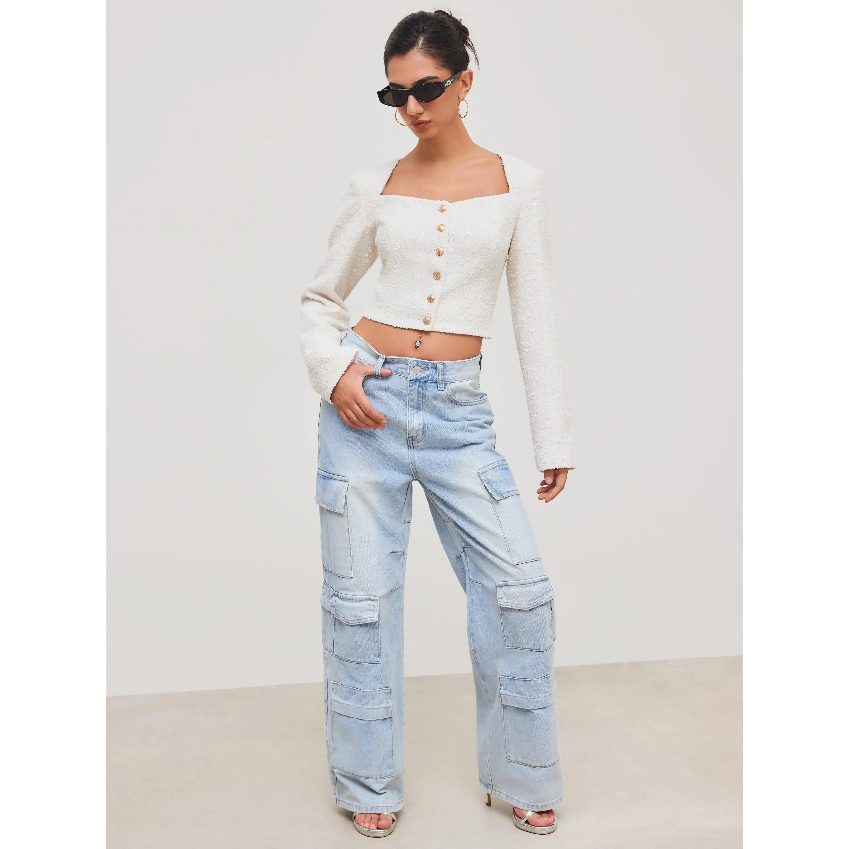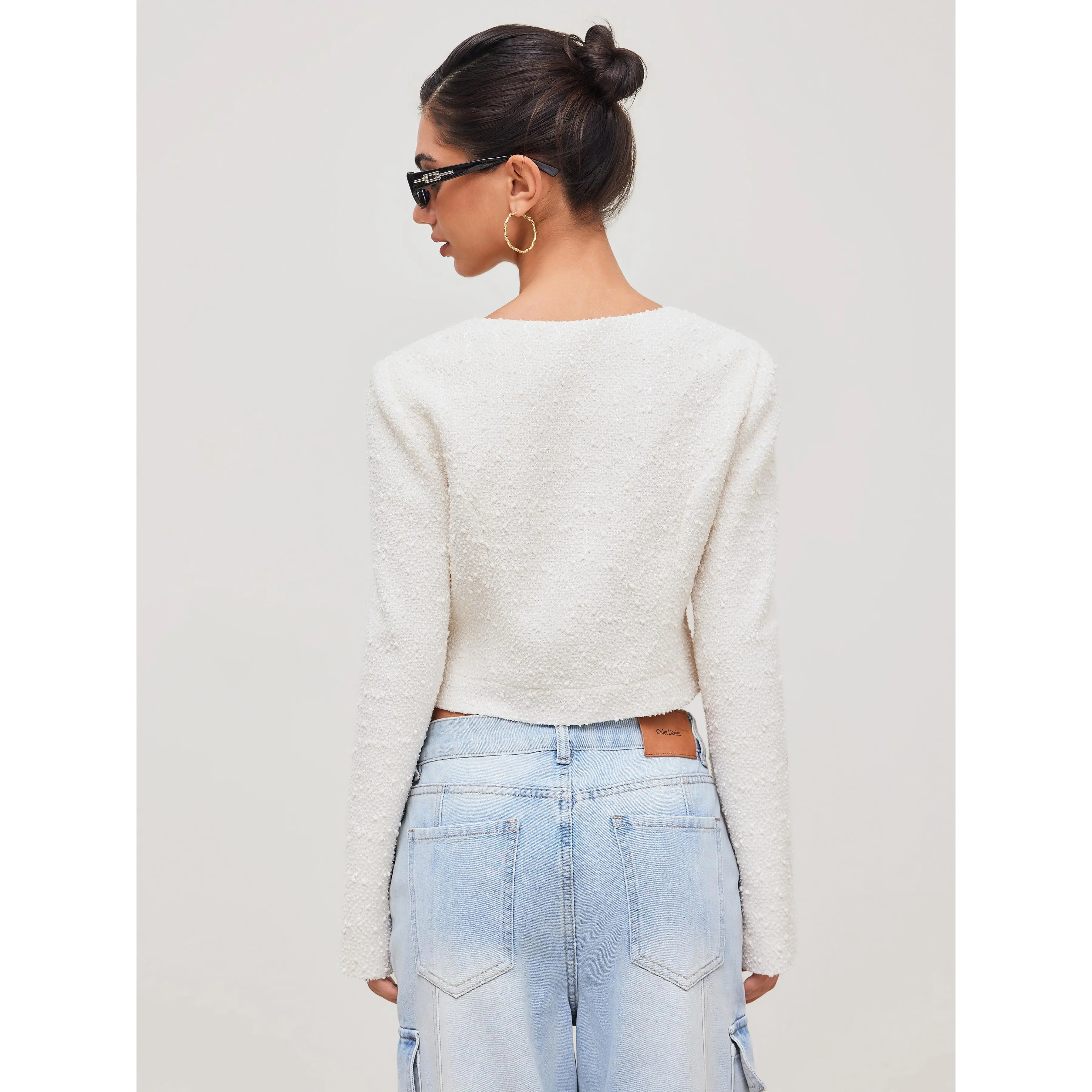 5. Cider [size 2-10] Tweed Square Neck Solid Button Crop Jacket