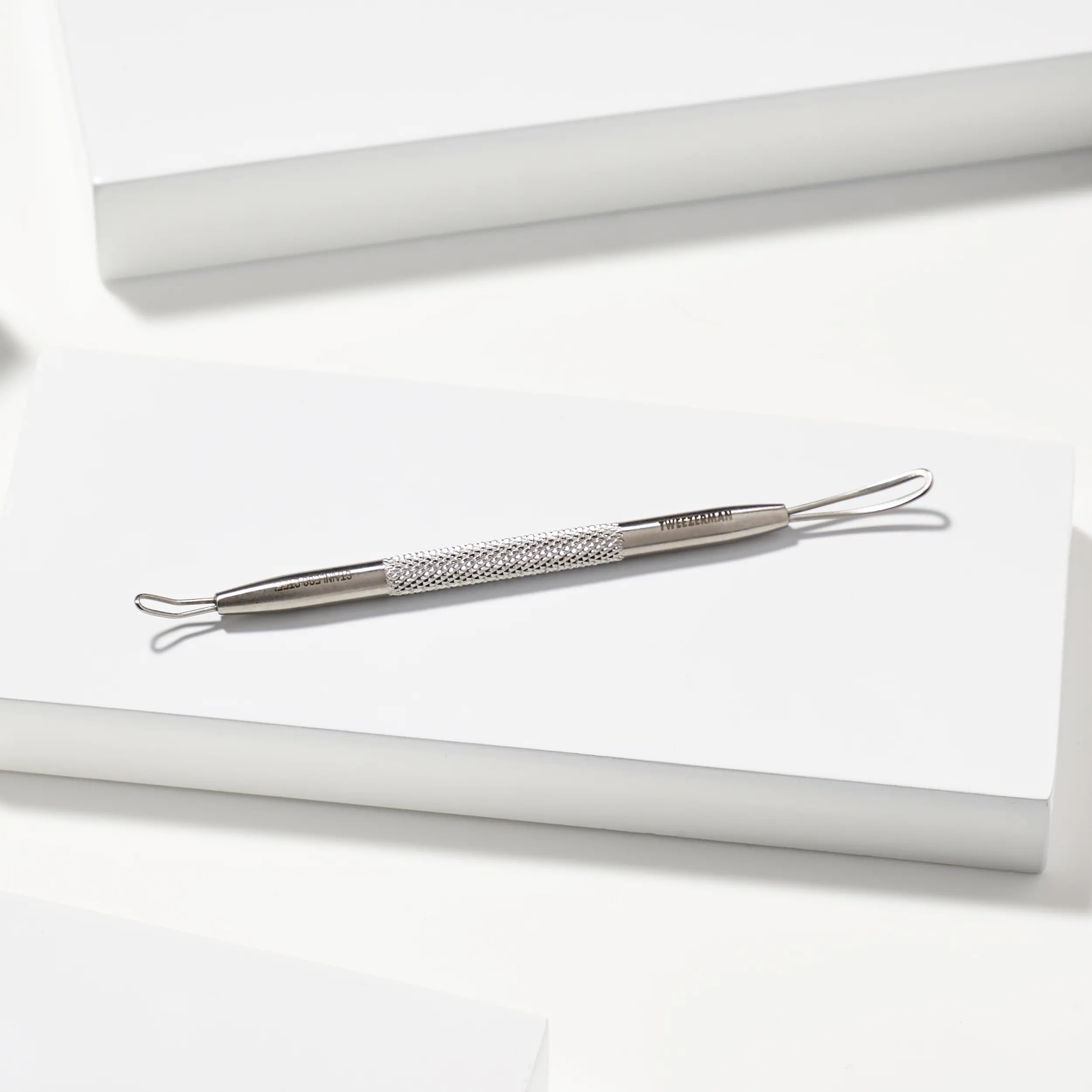 ·Smaller, angled end designed to effectively press out blackheads without damaging skin.