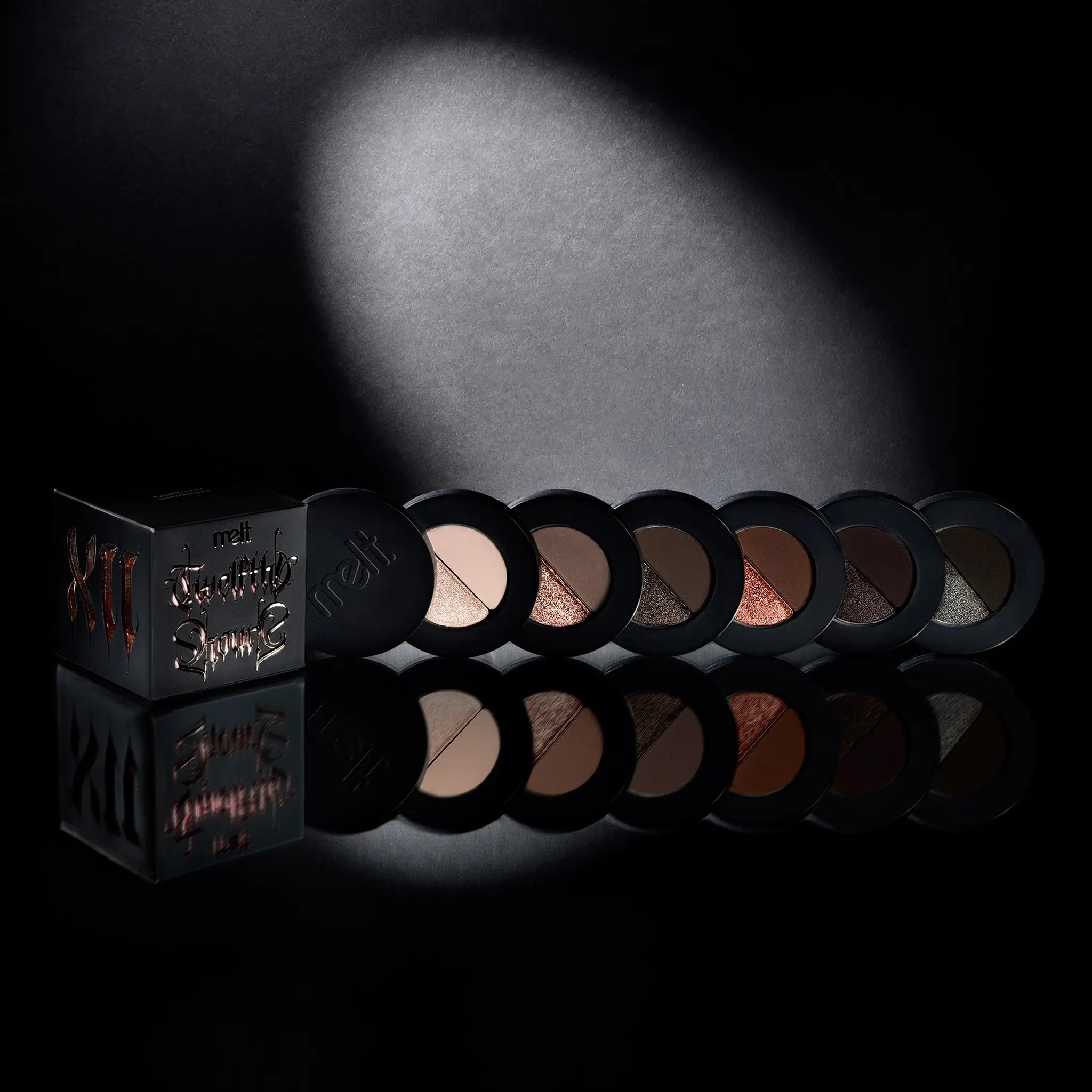 Ā·Twelfth Hour StackClassics never go out of style. Weāre bringing back the iconic magnetic eyeshadow stack that started it all. This stack features a brand-new lineup of shades, with duo-tone layers designed to capture the mood from dusk to midnight. With a lineup of cool, moody mattes, and shimmering tones this stack shifts effortlessly from soft definition to full-intensity glam. Back by popular demand in our original stack format. Limited editionādonāt miss your final hour.Ā Ā MATTE SHADESĀ Ā Curse- A soft, bone-taupe matteĀ Lay down a ghostly veilāperfect for carving shape or creating a seamless transition.Ā Ā 6sick6- A muted rosewood brown matteĀ Ā Just enough depth to add definition or warm up a cool-toned look.Ā Ā Graves- A cool-toned slate brown matteĀ Hauntingly smooth and ideal for sculpting the socket or smoked-out lash lines.Ā Ā 6 Feet Under -A rich terracotta clay matteĀ Brings warmth and edge in equal measure. Ground any look with this burnished base.Ā Ā Sin- A deep, bruised plum matte with gray undertoneĀ Dark and grungy with major attitude.Ā Ā Nocturnal -A true neutral deep brown matteĀ Moody, blendable, and essential for grounding any eye look.Ā Ā SHIMMER/METALLIC SHADESĀ Ā Veil-A sheer champagne shimmer kissed with pinkĀ like moonlight on skin. Use as a highlight or topper for instant glow.Ā Ā 12 Candles- A glistening rose gold metallic with high shineāĀ like candlelight flickering in the dark. Romantic and radiant.Ā Ā Midnight- A deep espresso shimmer laced with cool copper reflectĀ Mysterious, rich, and hypnotic.Ā Ā Past Dusk- A molten coral-pink foil Ā Glows like a sunsetāfiery, fresh, and totally unexpected.Ā Ā Omen- A weathered Plumsil bronze with cool reflectĀ Ancient, alchemical, and perfect for smoked-out glam.Ā Ā Witching Hour- A deep pewter with a soft metallic sheenĀ Icy, moody, and ready to conjure drama.Ā Ā Paraben freeĀ Talc freeĀ Ā