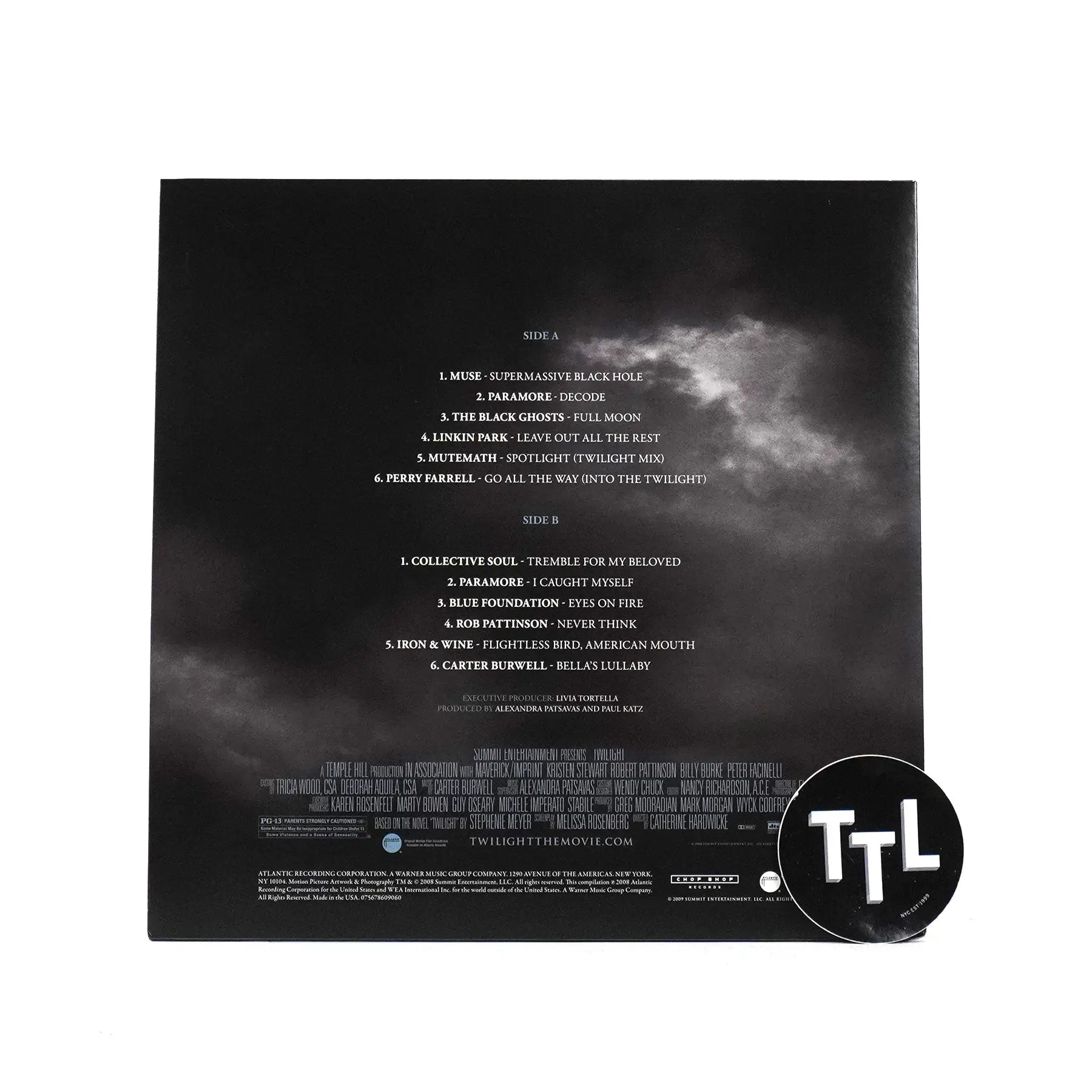 "The Original Motion Picture Soundtrack of Twilight features songs from Paramore, Rob Pattinson and Perry Farrell, plus 'Bella's Lullaby' and songs from Muse, Linkin Park and more!" - Atlantic