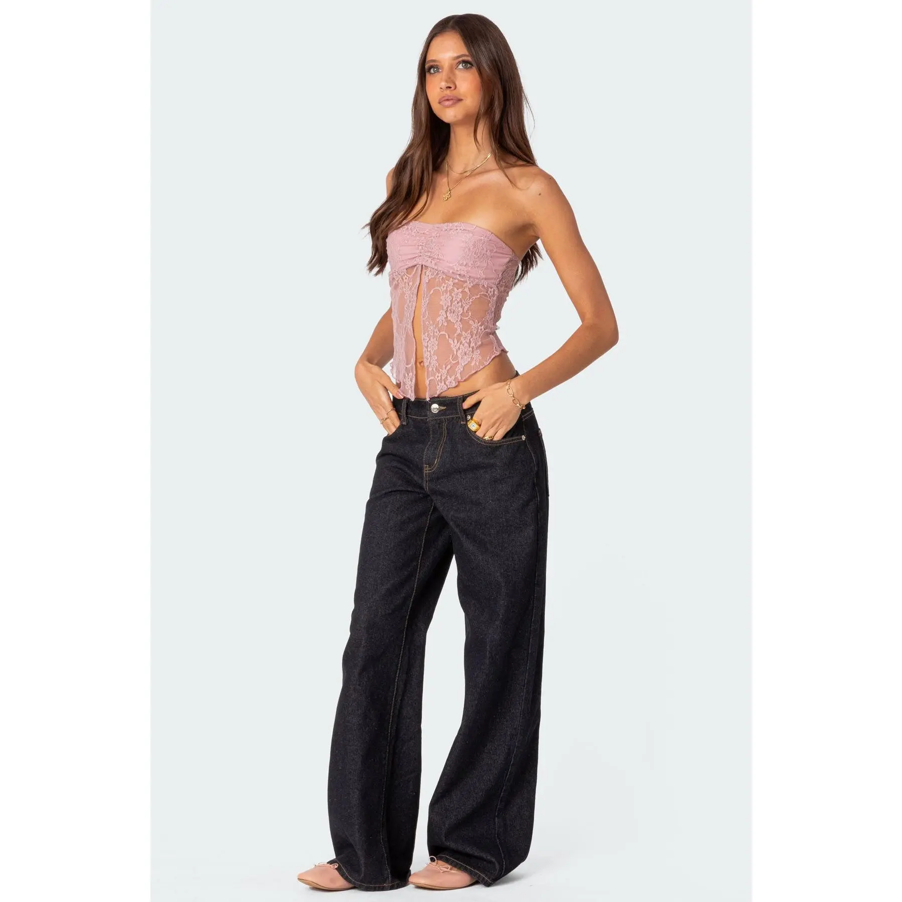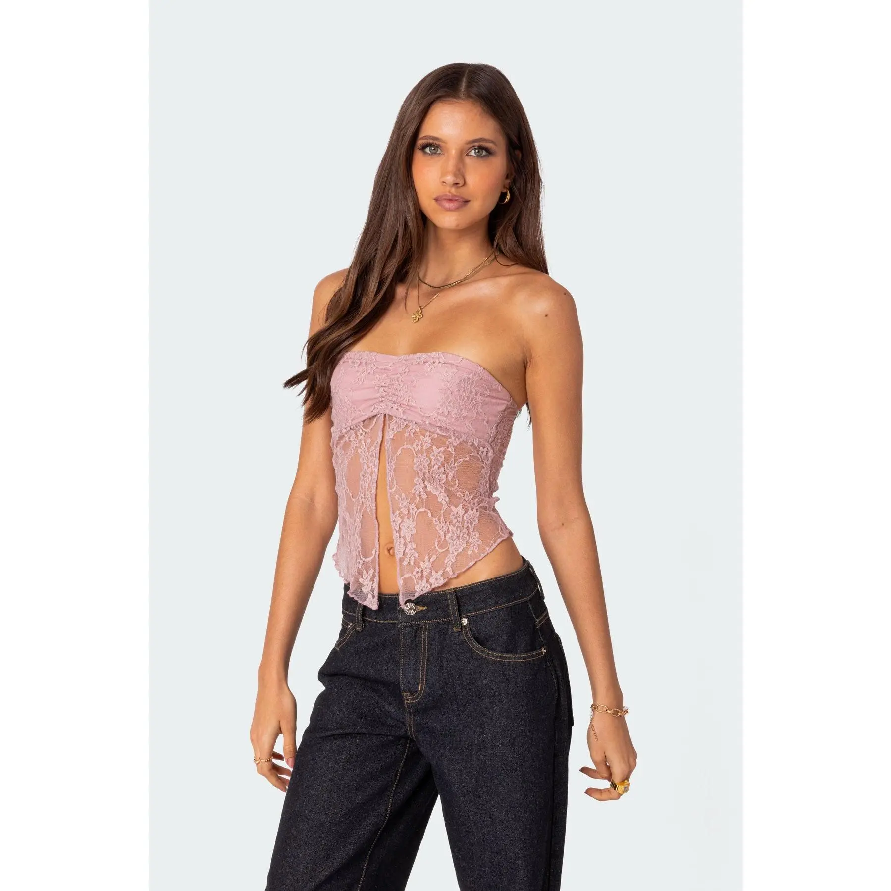 5. Twilight Sheer Lace Split Front Top