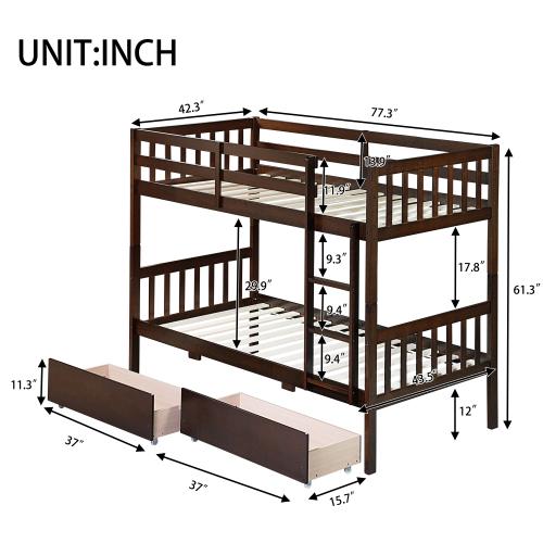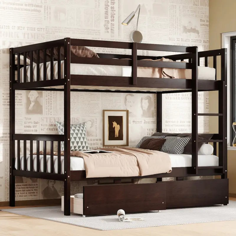 ·#3/1.1 [Safety and Quality Guaranteed]This bunk bed is crafted from quality rubber wood, plus the 13-slat upper and lower bed platforms, providing lasting sturdiness and durability.The high guardrails surrounding the upper bed will further prevent from accidental falling off the bed.