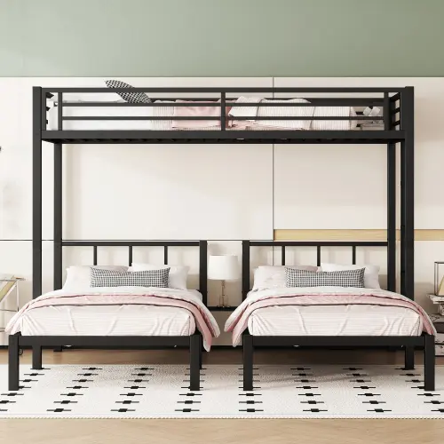 ·Sturdy Construction--Made from strong and sturdy metal provides durability and stability. Metal slats included, no need box spring. Weight capacity 250lbs for upper bed, 350lbs of each for bottom beds.