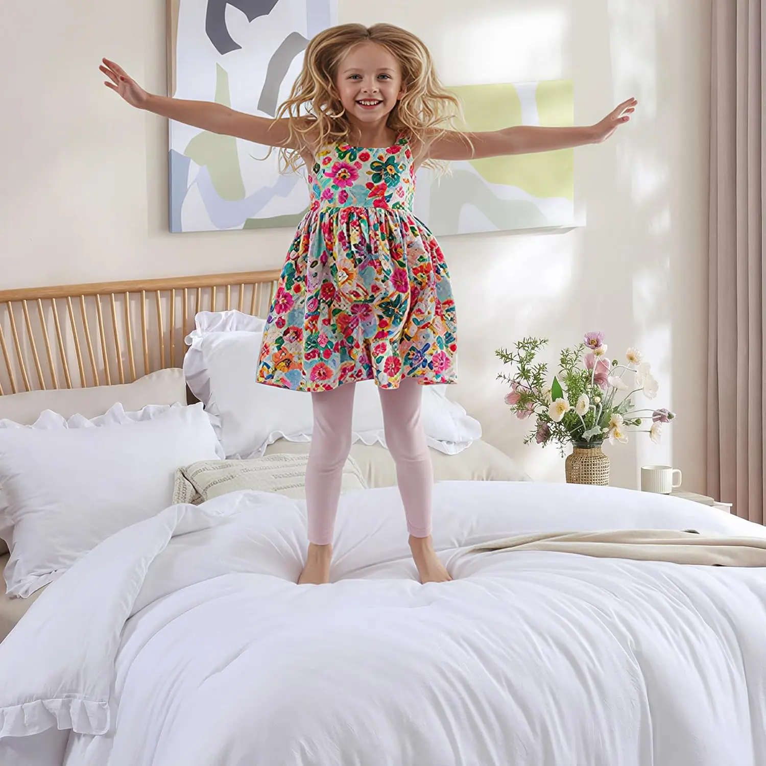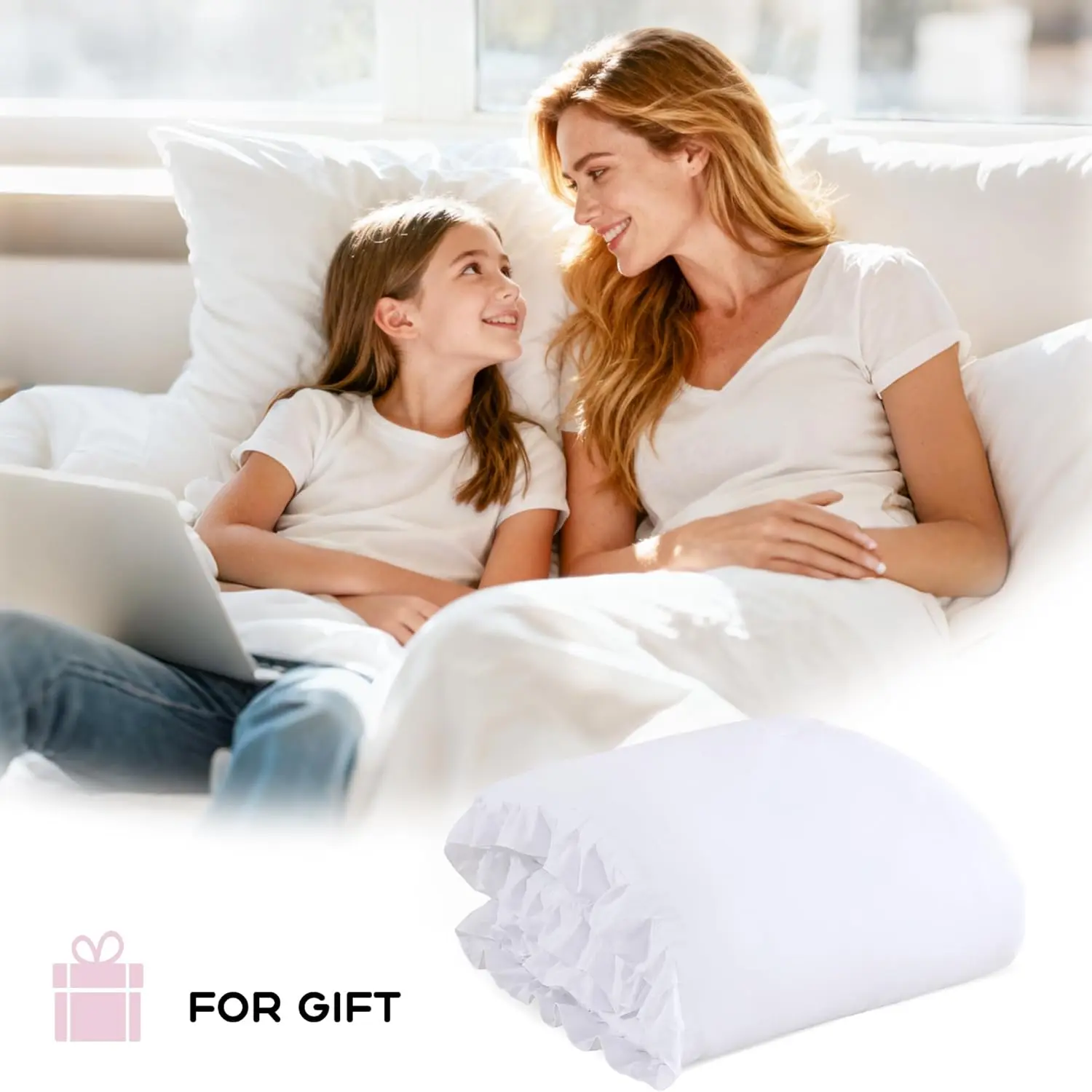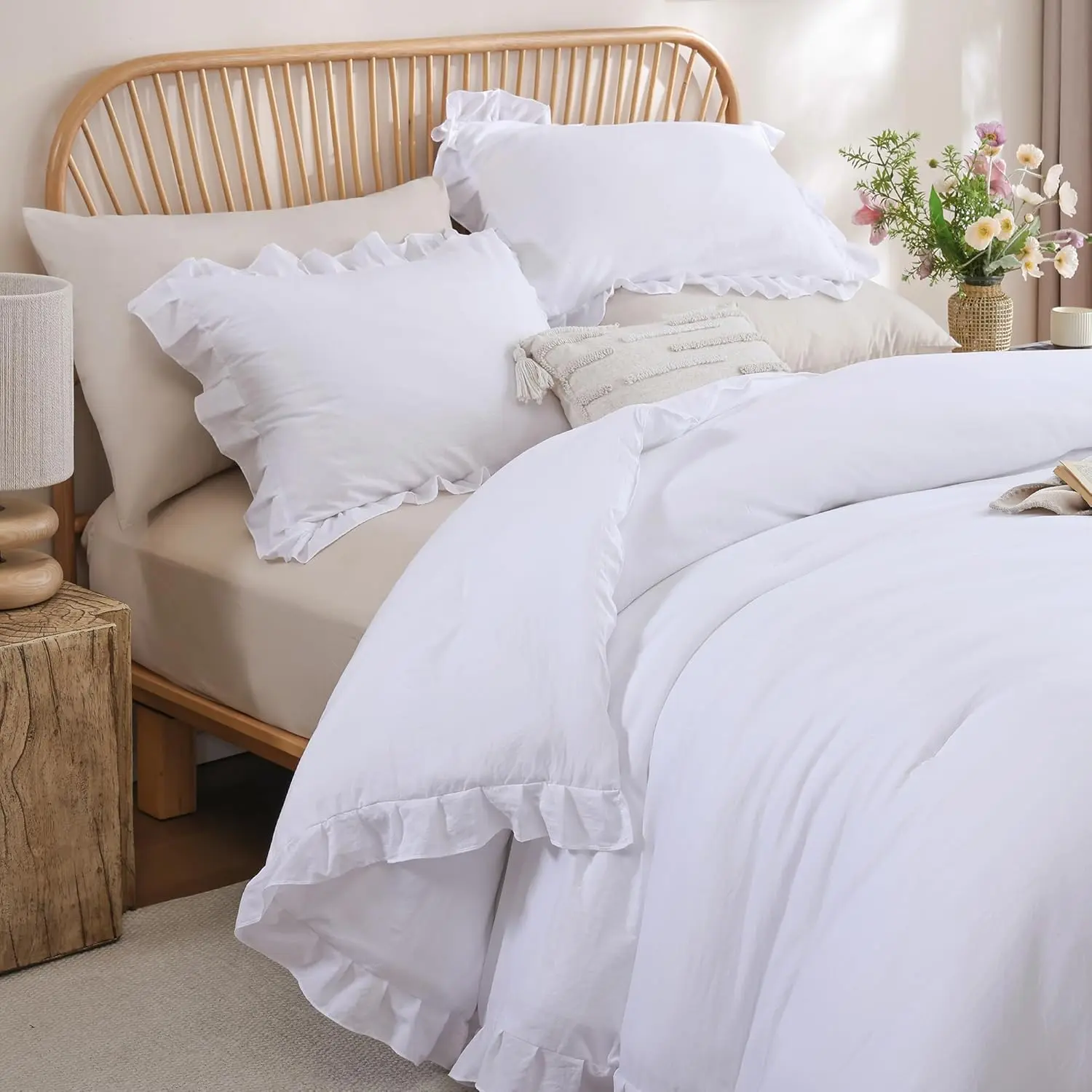 [Cozy Material]: The White comforter set for a Twin size bed is made of premium quality brushed microfiber material with a soft polyester inner fill, which is ultra soft and comfortable.This comforter is lighter than you think, and the touch feels smooth.It greatly improves your sleep quality, ensuring you wake up feeling refreshed.[Vintage Ruffled Design]: Our ruffled comforter set adopts a vintage style and features small tufted ruffles.The sensory and texture elements are extremely comfortable, perfectly blending graceful and abstract art, adding an extra layer of art and vintage style to match your room decor and brighten your space.It makes a perfect gift idea for men and women on special occasions, such as housewarming, Christmas, Thanksgiving, and birthdays.[Year Round]: The Twin comforter set’s weight is ideal for year-round use.The White comforter set keeps you warm in the winter and is suitable for summer use.It can be used directly without a duvet cover, reducing your time spent making the bed.It also serves as an alternative comforter with your favorite duvet cover.[Simple and Classic]: This ruffled comforter set comes in solid colors with stitched ruffles, adding a hint of art to your furniture and home decor.The solid color design will never go out of style, making it suitable for any color scheme and room style.Choosing our ruffled comforter means you will receive 1 White comforter set (66x90 inches) and 1 pillowcases (20x26 inches), with the pillowcases featuring the same ruffled stitched design.[Easy Care]: Our Twin comforter set is packed in a vacuum bag. When you receive the White comforter set, just shake and pat it gently until it becomes fluffy. To clean the White comforter set, machine wash separately in cold water with similar colors on a gentle cycle, and tumble dry on low heat. Do not bleach to keep the color vibrant.