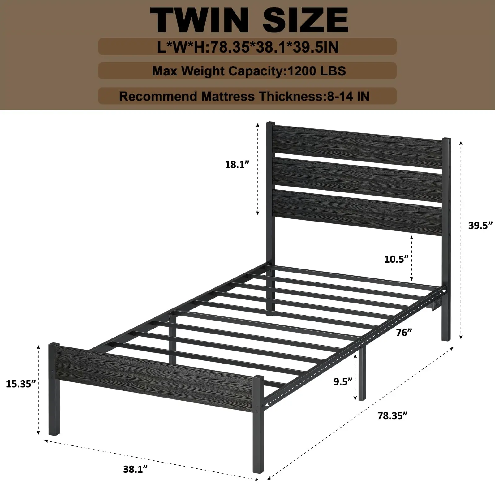 ·【Stable Structure】:This twin size black metal bed features heavy-duty steel side, Slats embedded design with EVA sponge prevent the slats from friction and making noise. weight capacity of 800 lb and ensuring that whenever you sleep you won't be bothered, squeaky noises.