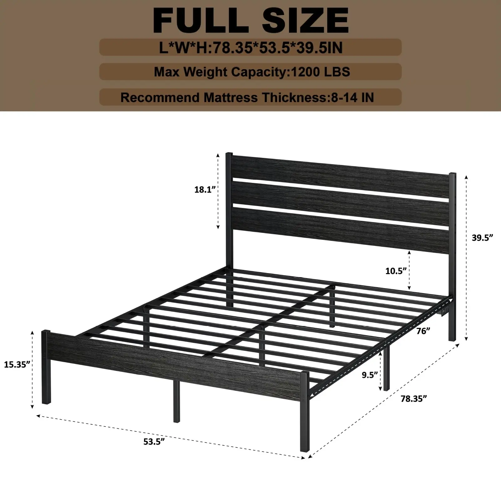 ·【Easy to Assemble】:Our metal full bed frame with headboard includes all the necessary components, Everything you need is in one package, Each part has a clear label, assembly instruction is clear and easy to understand.you can complete the assembly in just about 30 minutes.