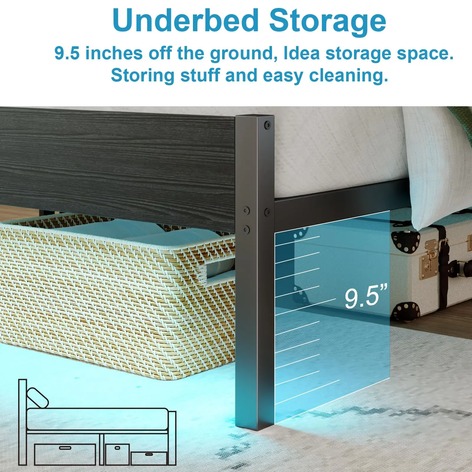 ·【Under-Bed Storage】:Space Our Metal platform full bed frames with 13 inch of ample under bed storage,bringing more storage space, keeping the room neat & organized. which enables you to fit shoes, bags, luggage and many other items without hassle.
