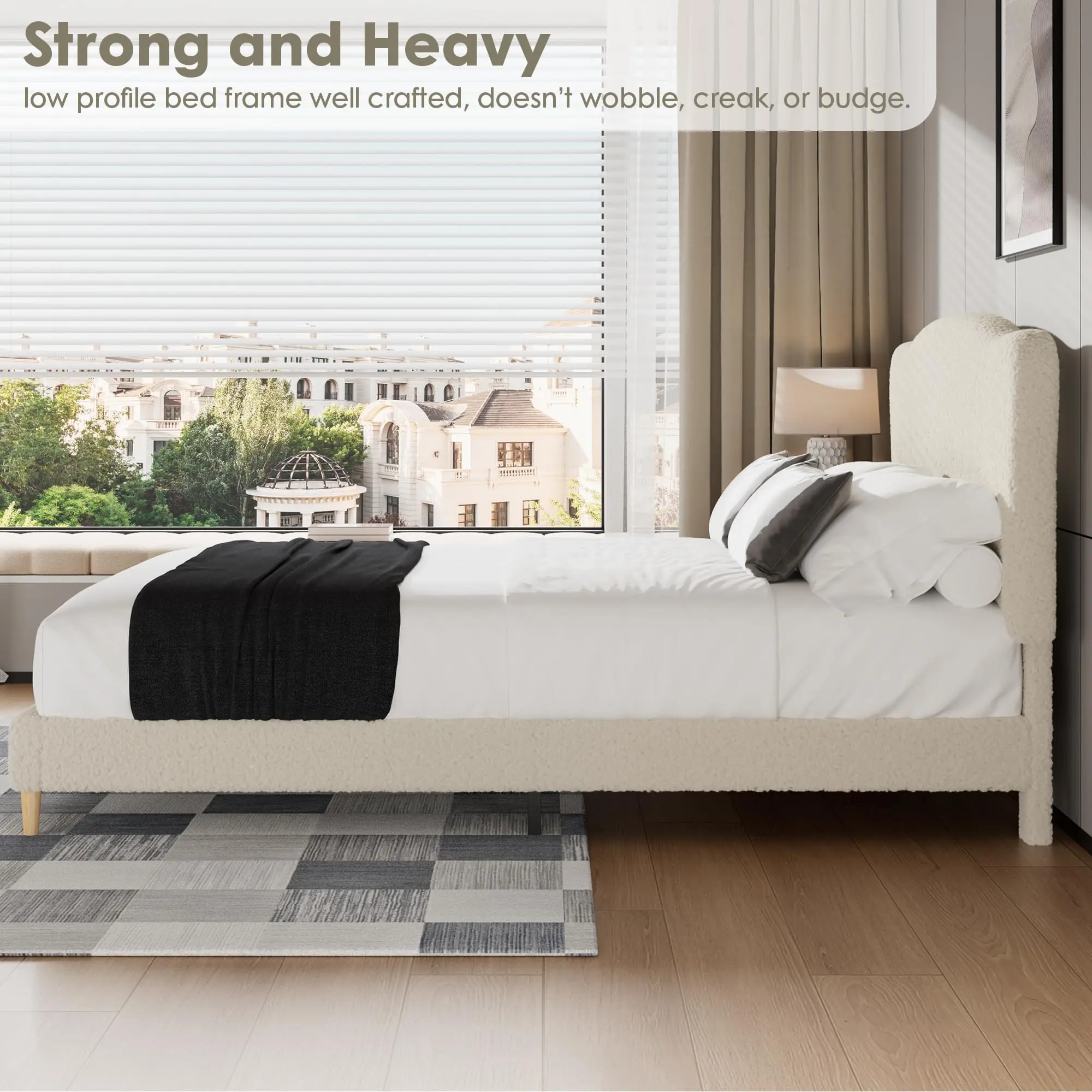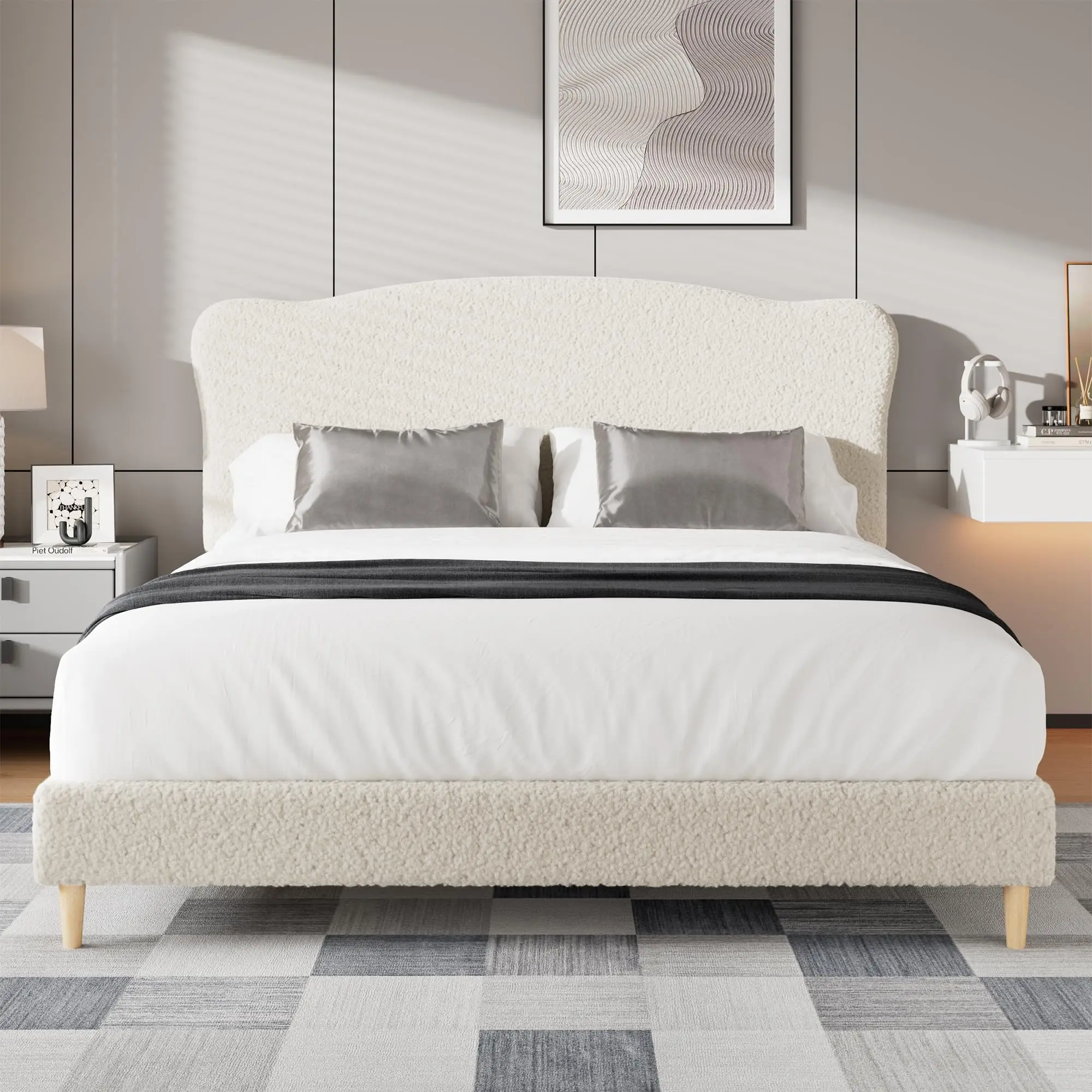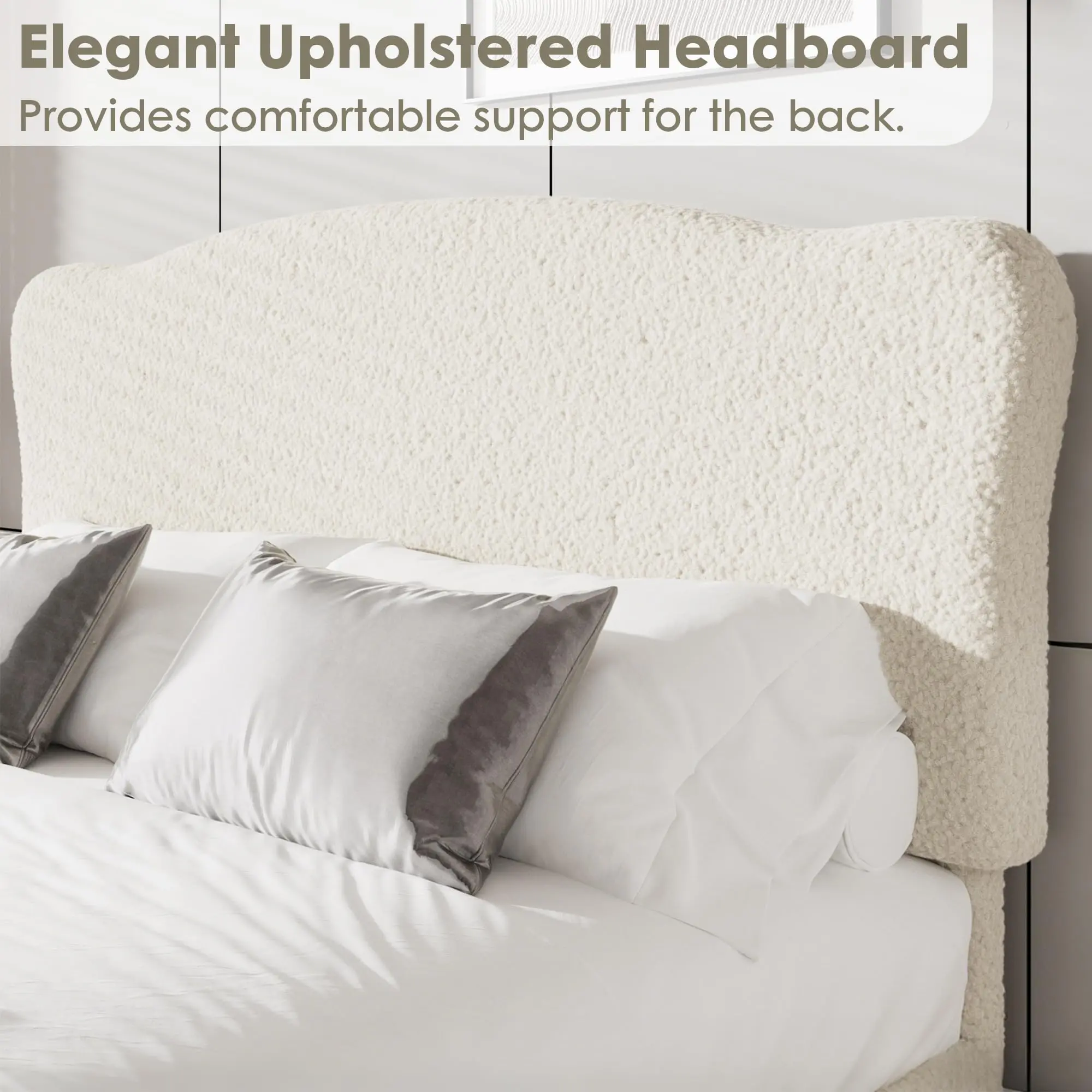 ·2.Deluxe Soft Upholstery: Wrapped in ultra-soft lambswool, sherpa, or Berber fleece, this bed frame provides a skin-friendly, warm, and breathable sleep surface for Classic comfort and style.