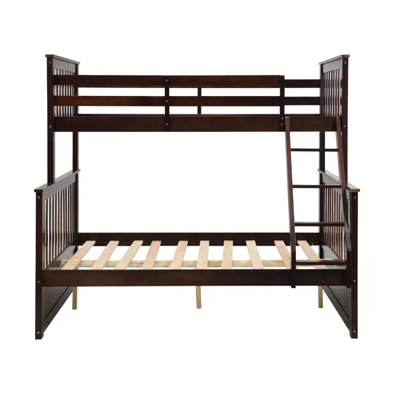 ·[Versatility galore] This bunk bed features one twin size upper bed and one full size bottom bed for accommodating your family or any overnight sleepers.It can also be divided into two individual beds for even more convenience, depending on how you want to organize your space.No spring box needed.