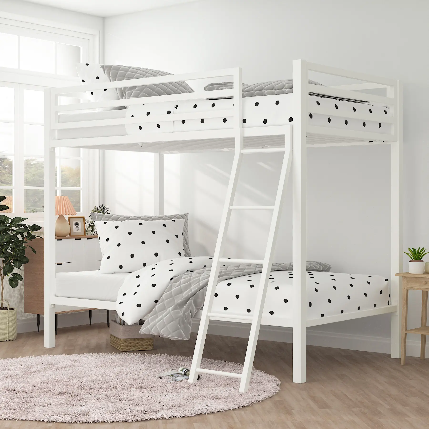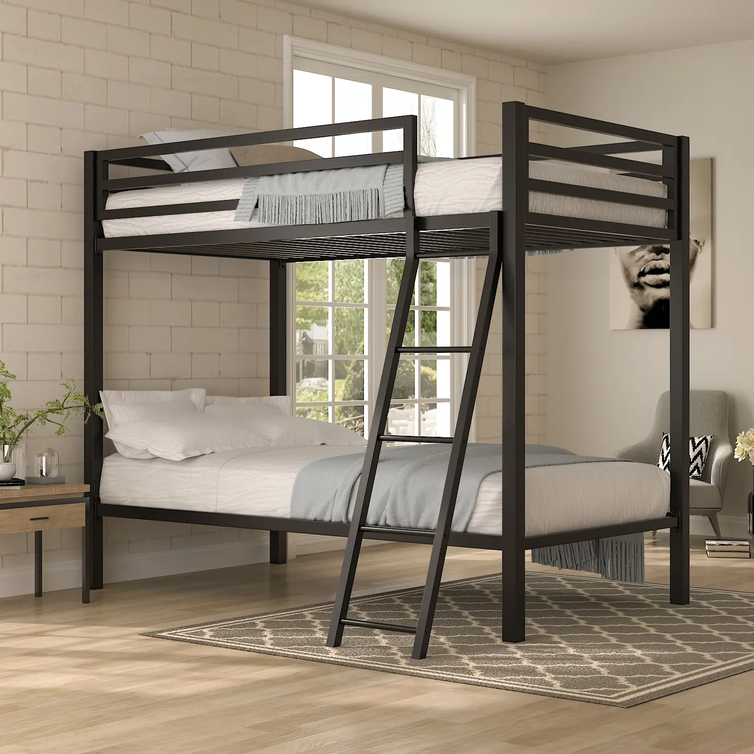 ·Playful Atmosphere: The compact silhouette and industrial design of the bed create a practical and playful space for kids or juniors to share. This can make the bedroom feel more fun and exciting.