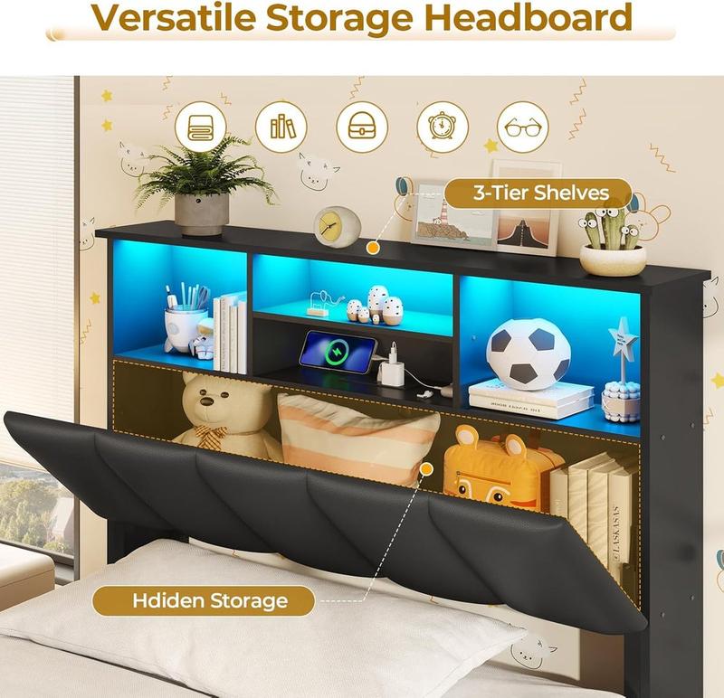 Twin Size LED Bed Frame with Headboard and Charging Station, perfect for the teens ✨🛏️ #blackfriday #sikaic #bedframe #bed #bedsidetable