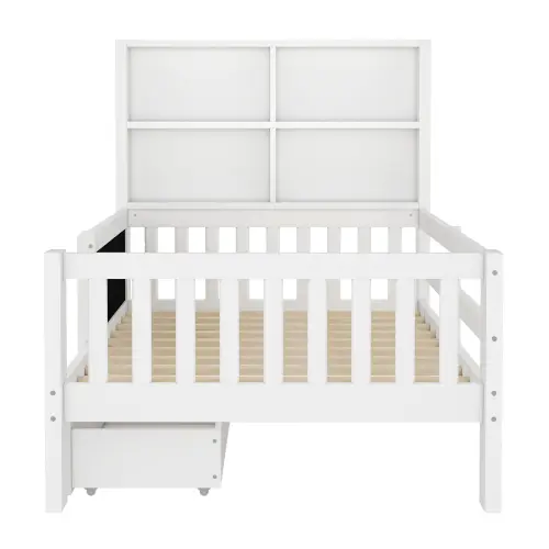 ·【Creative Chalkboard Headboard】This twin platform bed features a unique chalkboard headboard that lets kids draw, doodle, or leave notes, sparking creativity while making bedtime more fun. It’s both playful and functional, adding a personal touch to your child’s room.