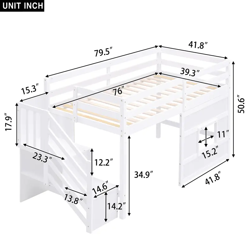 ·[Sturdy Wood Frame] The twin size loft bed is constructed with a sturdy pinewood frame that features a natural wood grain look for enhanced stability and durability.