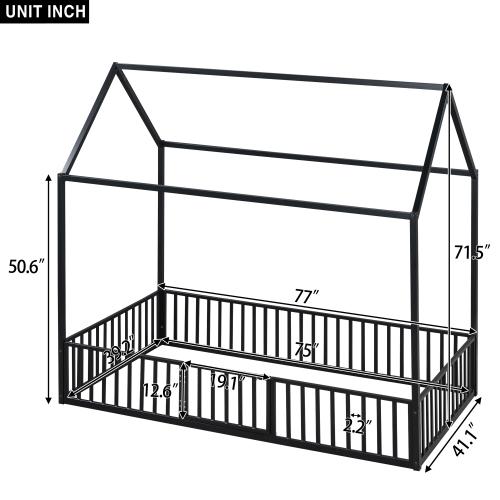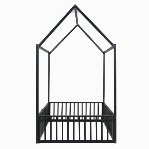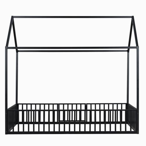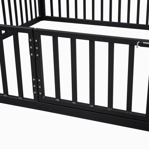 [Bellemave]Twin/Full  Size Metal House Bed with Fence and Door, Black[Bellemave]Twin/Full  Size Metal House Bed with Fence and Door, Black
