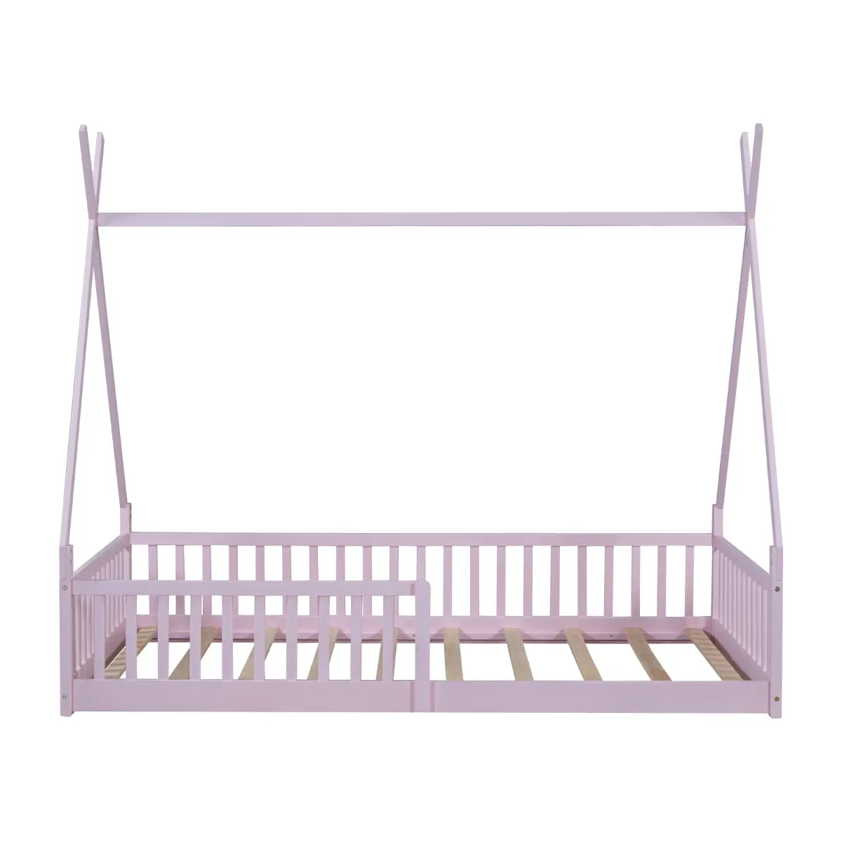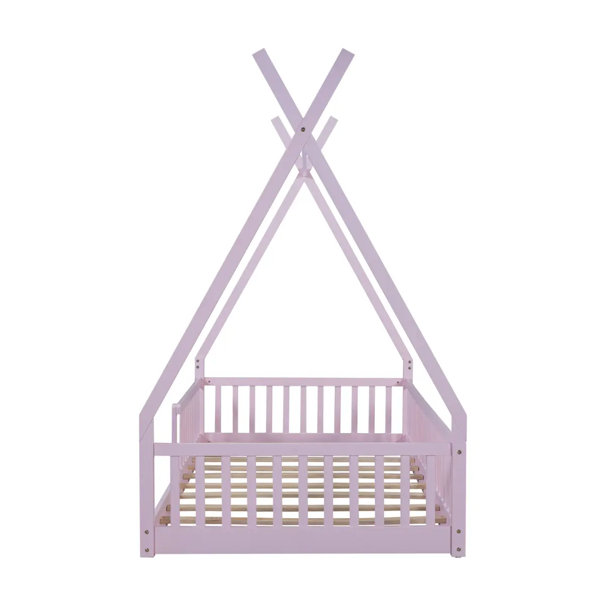 Twin Size Wood House Bed with Fence, Pink