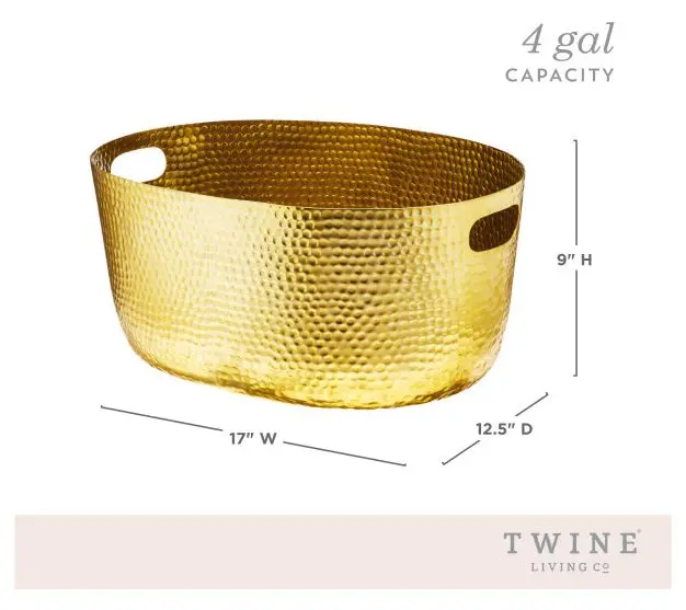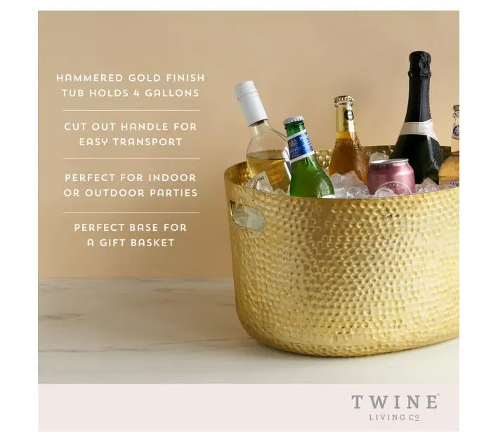 Twine Gold Hammered Tub  Elevate your hosting setup with this hammered gold beverage tub designed to look beautiful and work hard. This four-gallon aluminum tub holds wine bottles, champagne, canned drinks, and ice in one elegant centerpiece. The lightweight hammered metal design adds a luxe touch while the cutout handles make it easy to carry from kitchen to patio. Ideal for indoor entertaining, outdoor parties, holidays, and creating elevated gift baskets. #hosting #hostingtips #entertainingathome #tiktokshopcreatorpicks #toktokshopjumpstartsale