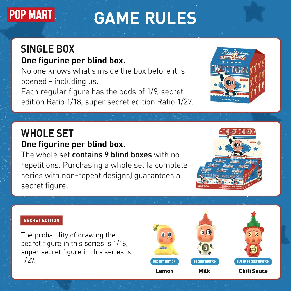 These are super cute and I love their size. I need popmart to make more of these small twinkle twinkle figurines.