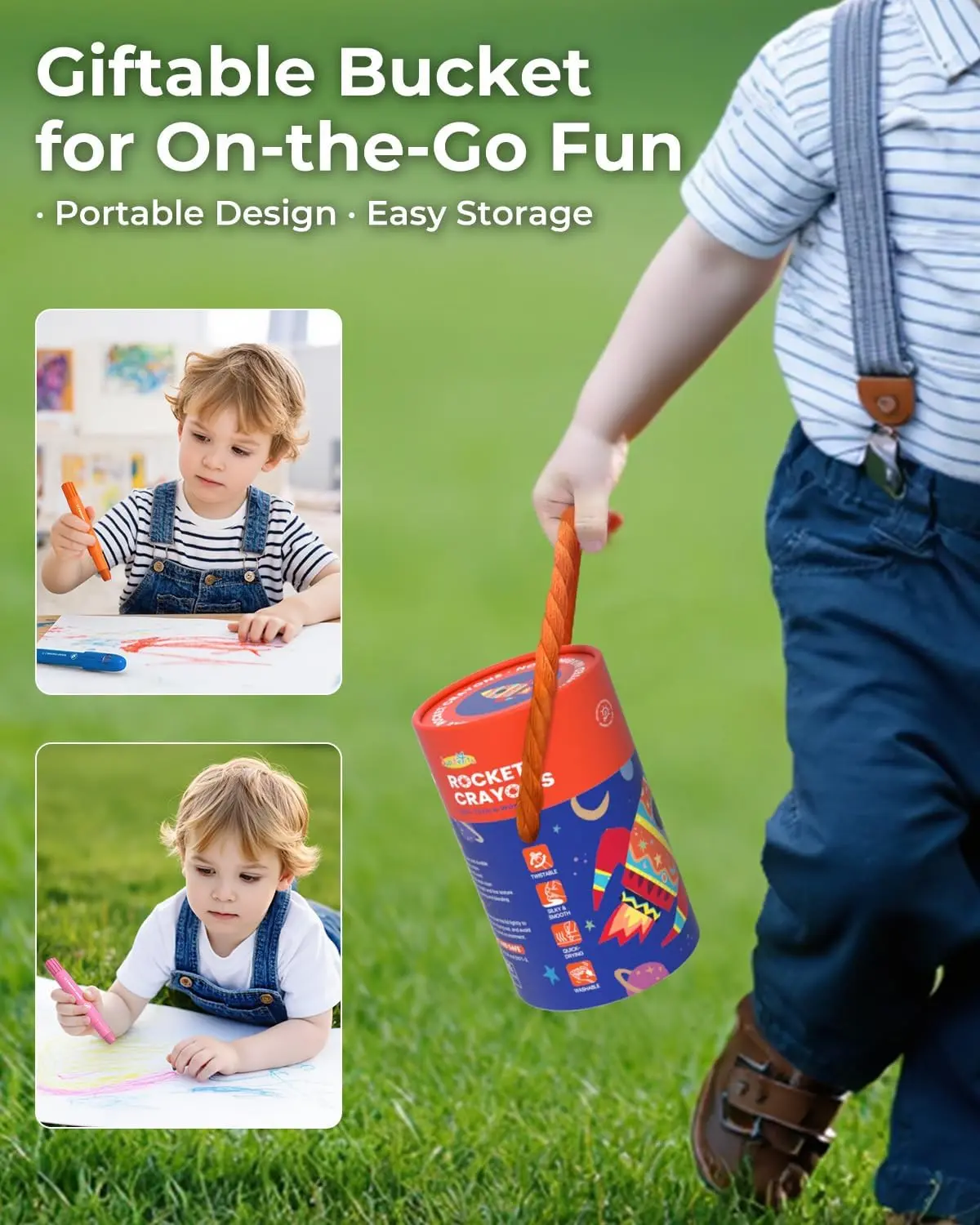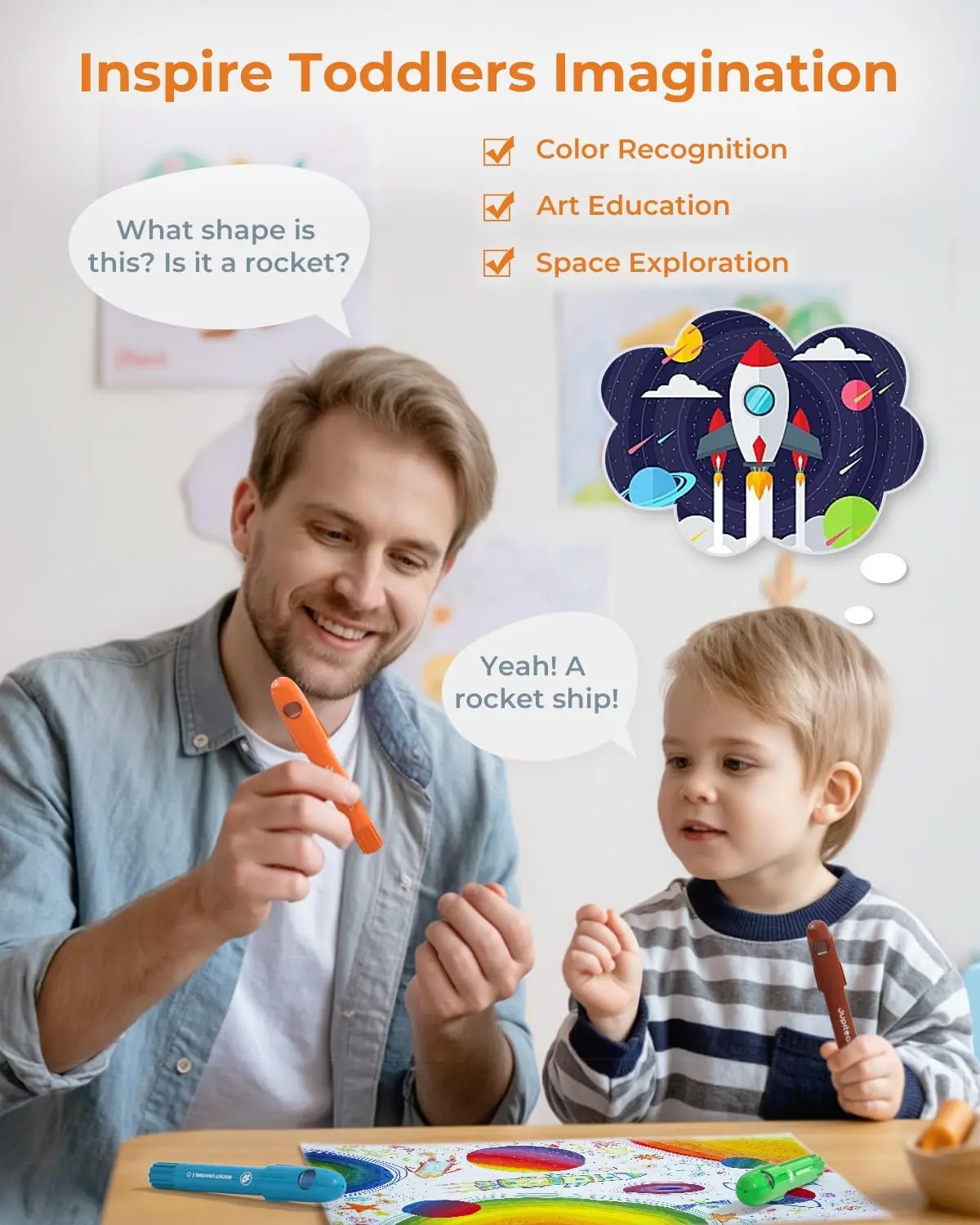 ·Spark Little Imaginations with Rocket Crayons: The unique rocket-shaped design sparks children’s interest in space and science. It’s a fun way for parents and grandparents to start engaging, space-themed conversations while drawing together. Our twist crayons encourage early STEM curiosity and make learning more exciting through creative play