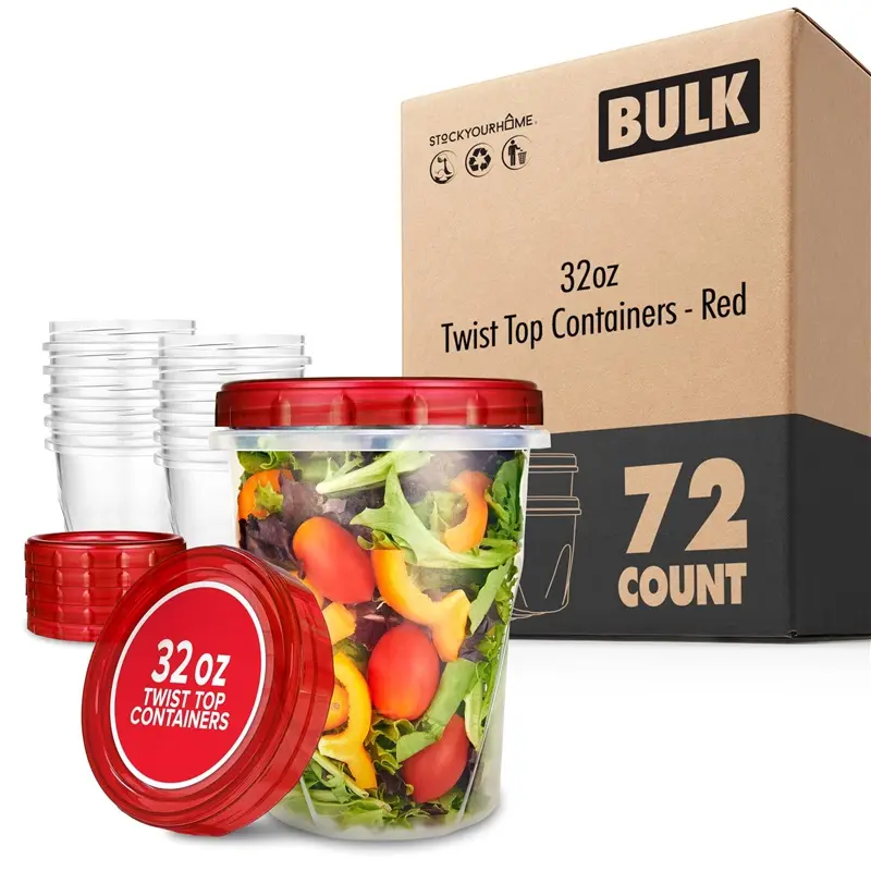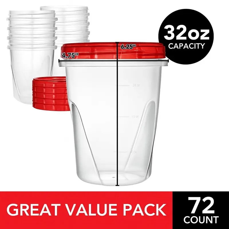 ·Great Value: Our bulk pack of deli containers includes 72 - 32 ounce (4 cup) containers with red lids. Each container measures 4.75