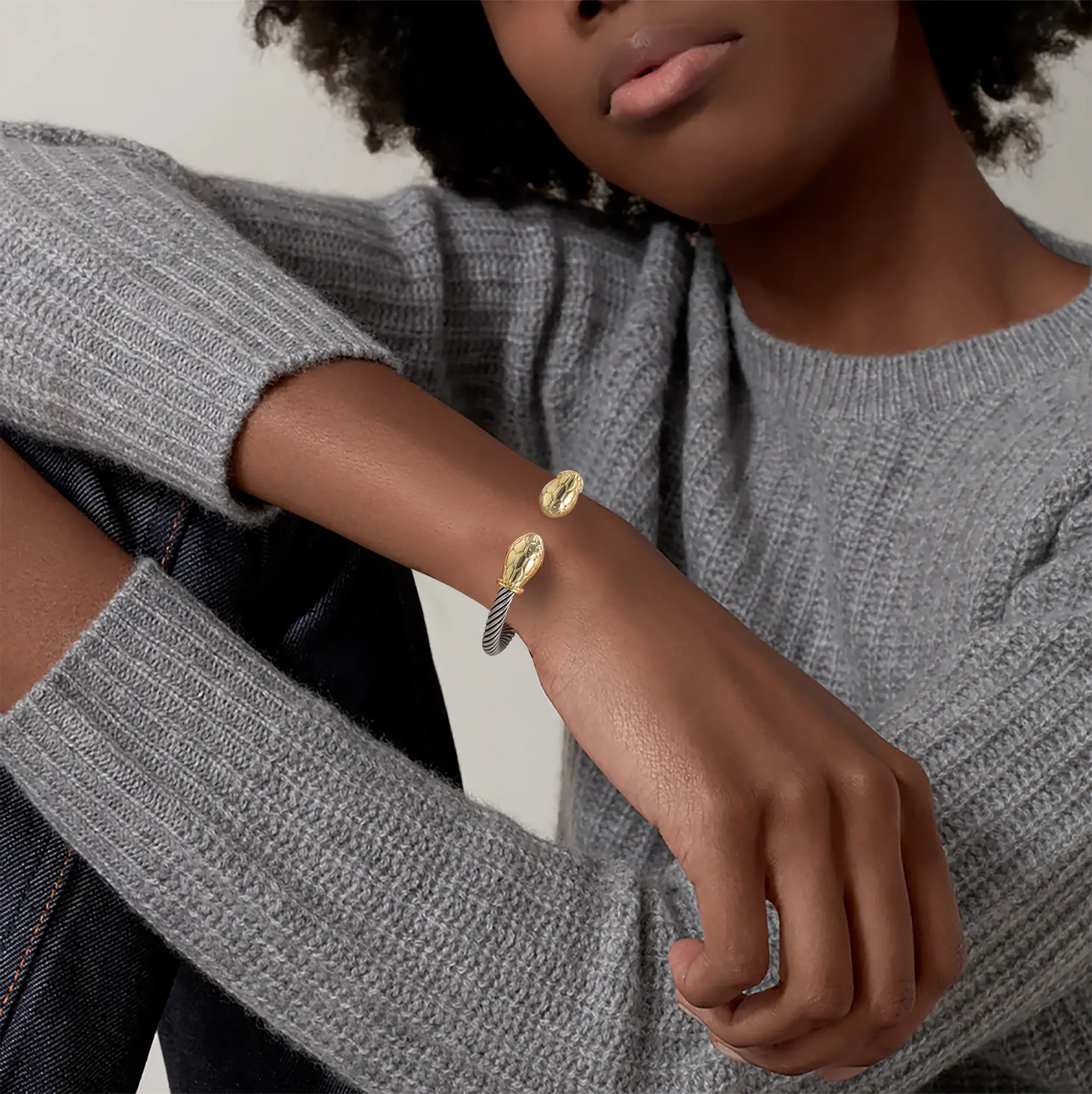 ·End Elements: Snake heads with intricate scale-like detailing for an elegant touch.