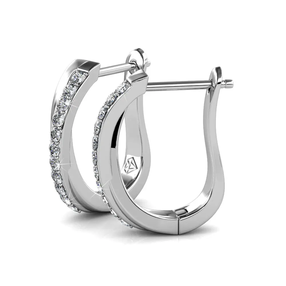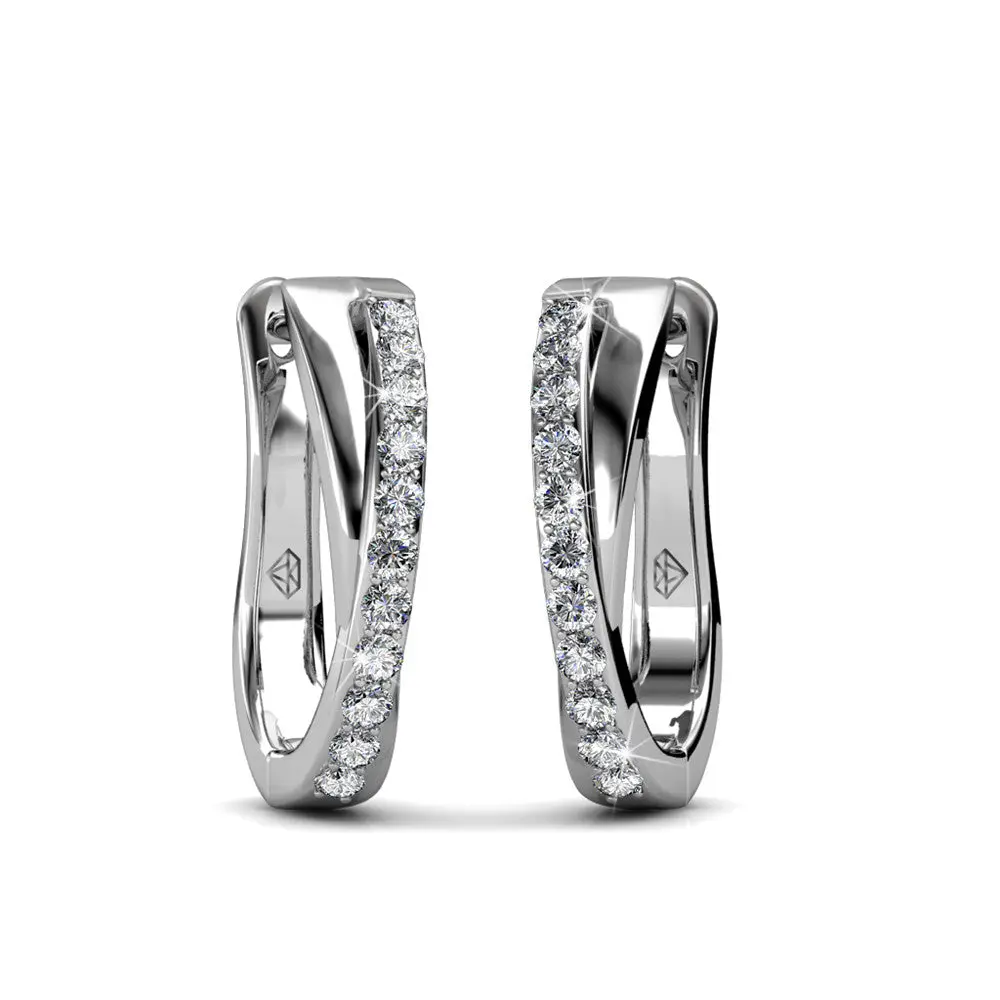 Amaya 18k White Gold Plated 16mm Twisted Hoop Earrings with Simulated Diamond Crystals