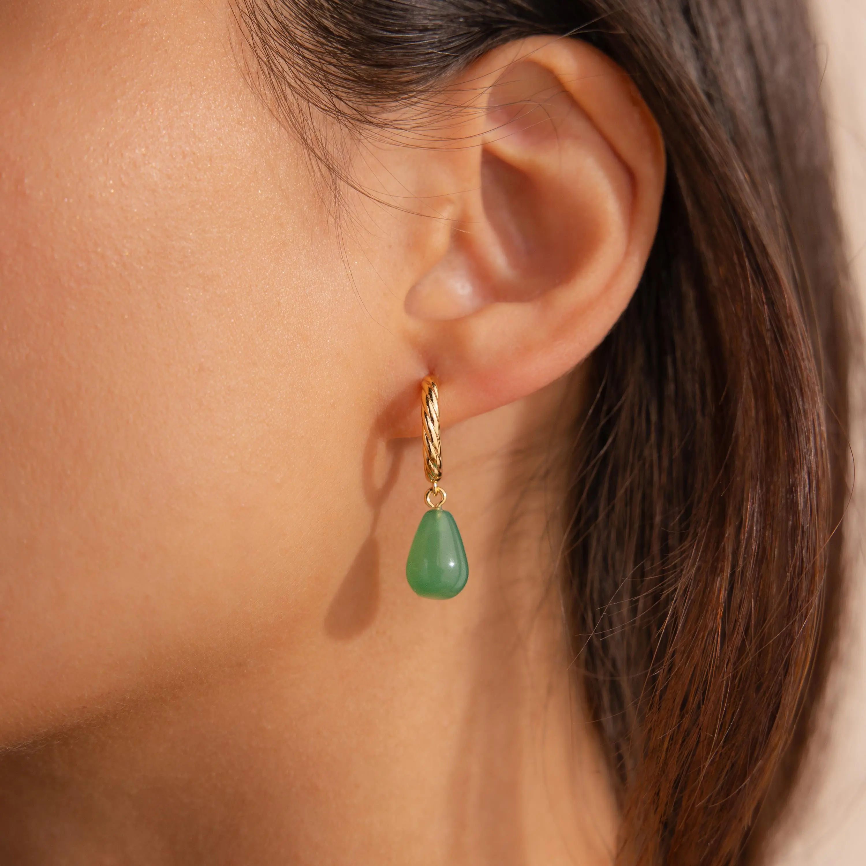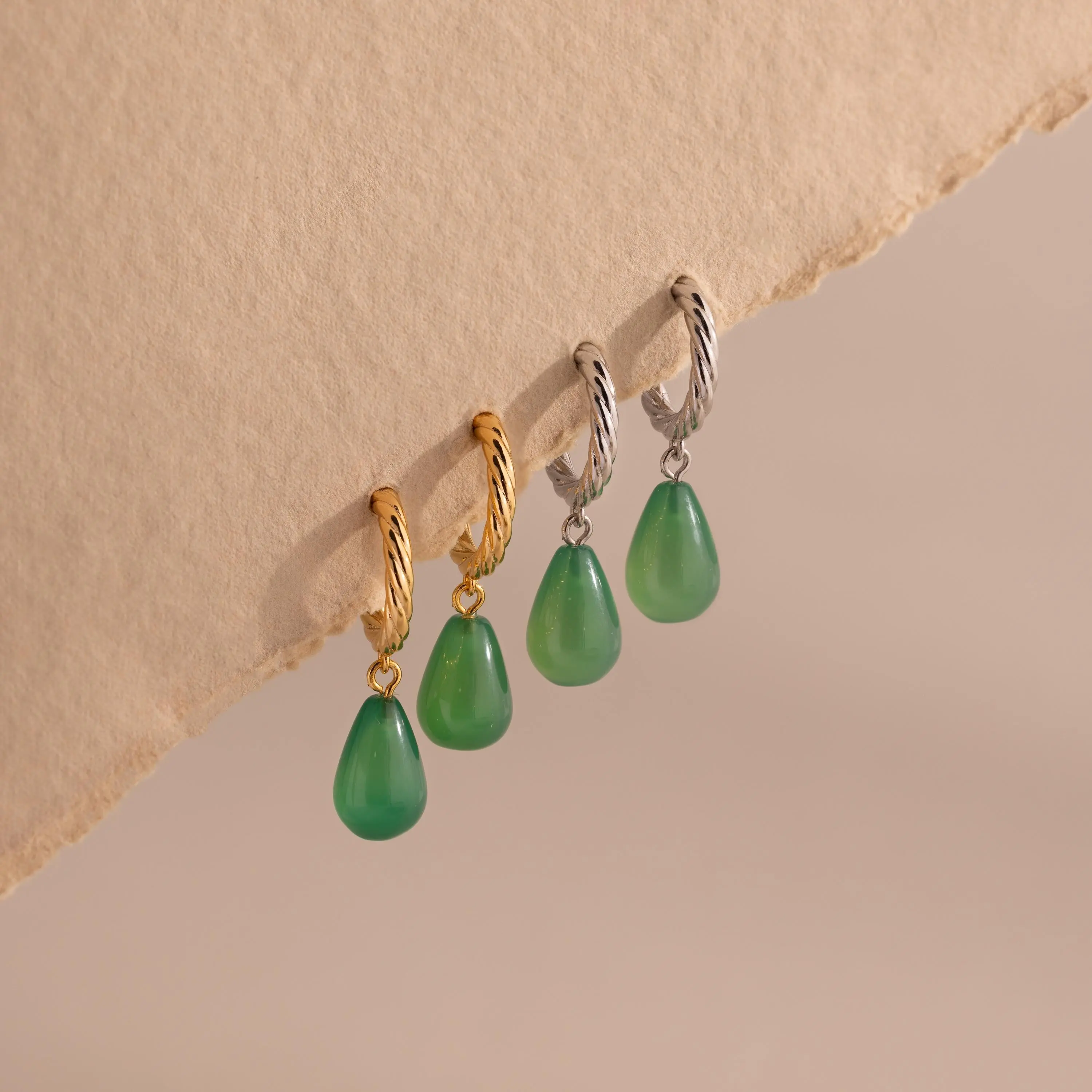 A bold mix of textures, our Twisted Jade Hoops pair a twisted metal design with a smooth jade teardrop. Equal parts sculptural and serene, perfect for elevating any outfit. A thoughtful gift for jade lovers or bold accessory fans ♡
