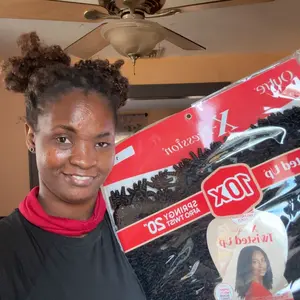 COLOR SHOWN: 1B MATERIAL: Synthetic Hair  TYPE: Crochet Braid LENGTH: 20" HEAT SAFE: Yes STYLE: Springy Afro Twist DESCRIPTION: