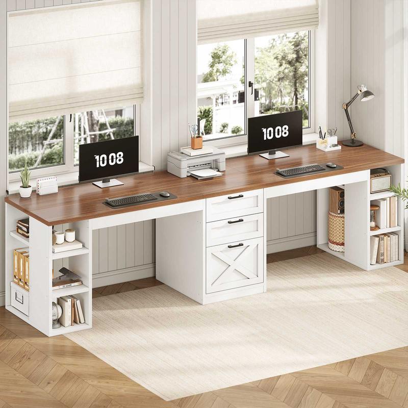 5. SEDETA 96.5 Inch Long Two Person Farmhouse Computer Desk Writing Desk with Drawers Storage Shelves